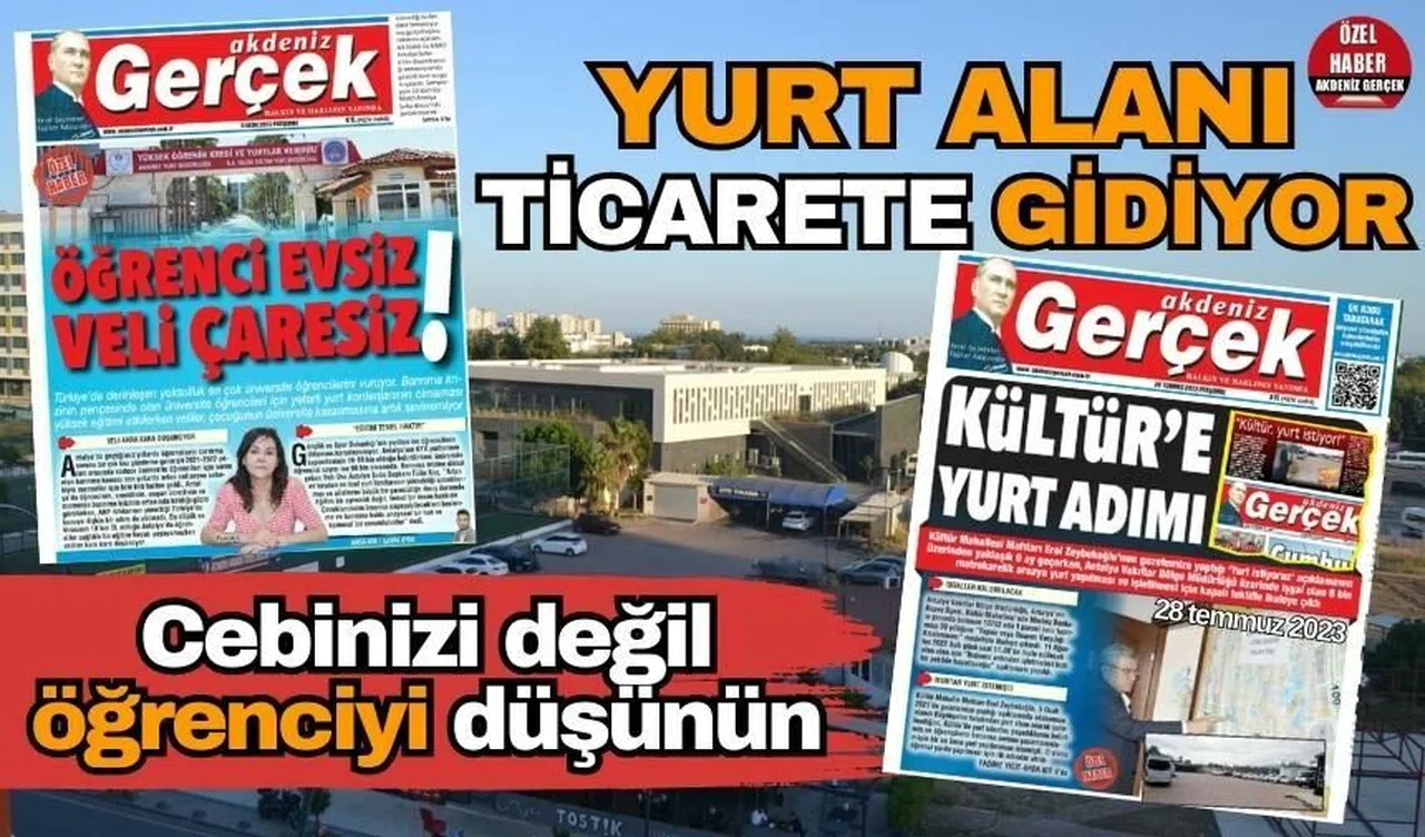 Geçtiğimiz yıl Kepez ilçesi Kültür Mahallesi 10703 ada 1 parselde bulunan 8 bin metrekarelik alana yurt yapım ihalesi yapılmış ancak ihaleye katılım olmadığı için ihale düşmüştü. Edinilen son bilgiye göre fonksiyon değişikliği çalışmaları başladı. Alanın ticari alana dönüştürülerek kullanıma sunulması planlanırken duruma tepki gösteren eğitimciler, “Cebinizi değil öğrencileri düşünün” dedi.
