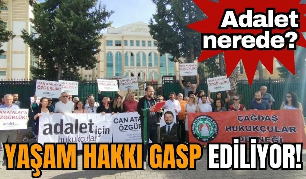 Aksu, “İhlalin giderilmesi açısından verilen bu ayrıntılı hükme rağmen Hatay halkının vekili olan Can Atalay'ın tahliyesini sağlamayan ve tutsaklığını devam ettiren Istanbul 13. Ceza mahkemesi hürriyeti tahdit suçu işlemektedir. Ağır Artık yürütme, yargının üstündeki elini çekmeli, yargı kendi üstündeki her türlü baskıya boyun eğmeye son vermelidir. Türkiye Cumhuriyeti Anayasası'nda sayılan ve değiştirilemeyeceğine ilişkin hüküm bulunan hukuk devleti ilkesiyle birlikte demokrasi ilkesini yok sayan bir kısım yargı mensubunun işlediği suçları görmezden gelemeyeceğimiz de bilinmelidir. Tüm bu sebeplerle biz Antalya Adalet Için Hukukçular Platformu, Çağdaş Hukukçular Derneği ve Avukatlar Sendikası üyeleri olarak Can Atalay'ın derhal salıverilmesinin, KYK cinayetinde ihmali olan tüm sorumluların yargılanmasının evrensel hukukun gereği ve Anayasal bir zorunluluk olduğunu kamuoyuna bildiririz” diyerek hukuk vurgusu yaptı.