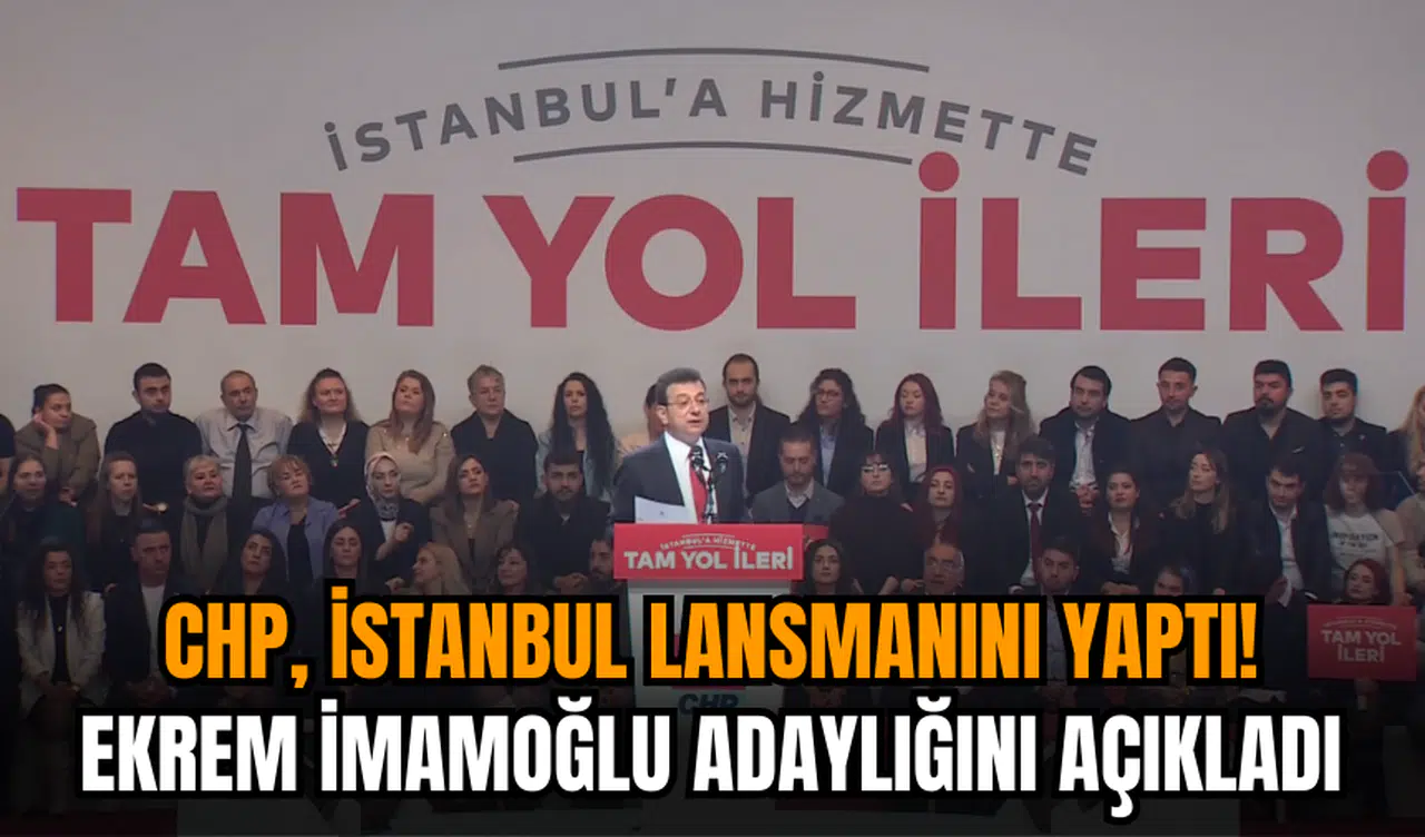 Cumhuriyet Halk Partisi (CHP), İstanbul'daki yerel seçim çalışmalarına resmi bir başlangıç yaptı. Haliç Kongre Merkezi'nde düzenlenen aday lansmanında İstanbul Büyükşehir Belediye Başkanı Ekrem İmamoğlu, "Tam yol ileri" sloganıyla seçim kampanyasını başlattı. Lansmana, CHP Genel Başkanı Özgür Özel ve CHP İstanbul İl Başkanı Özgür Çelik de katıldı.