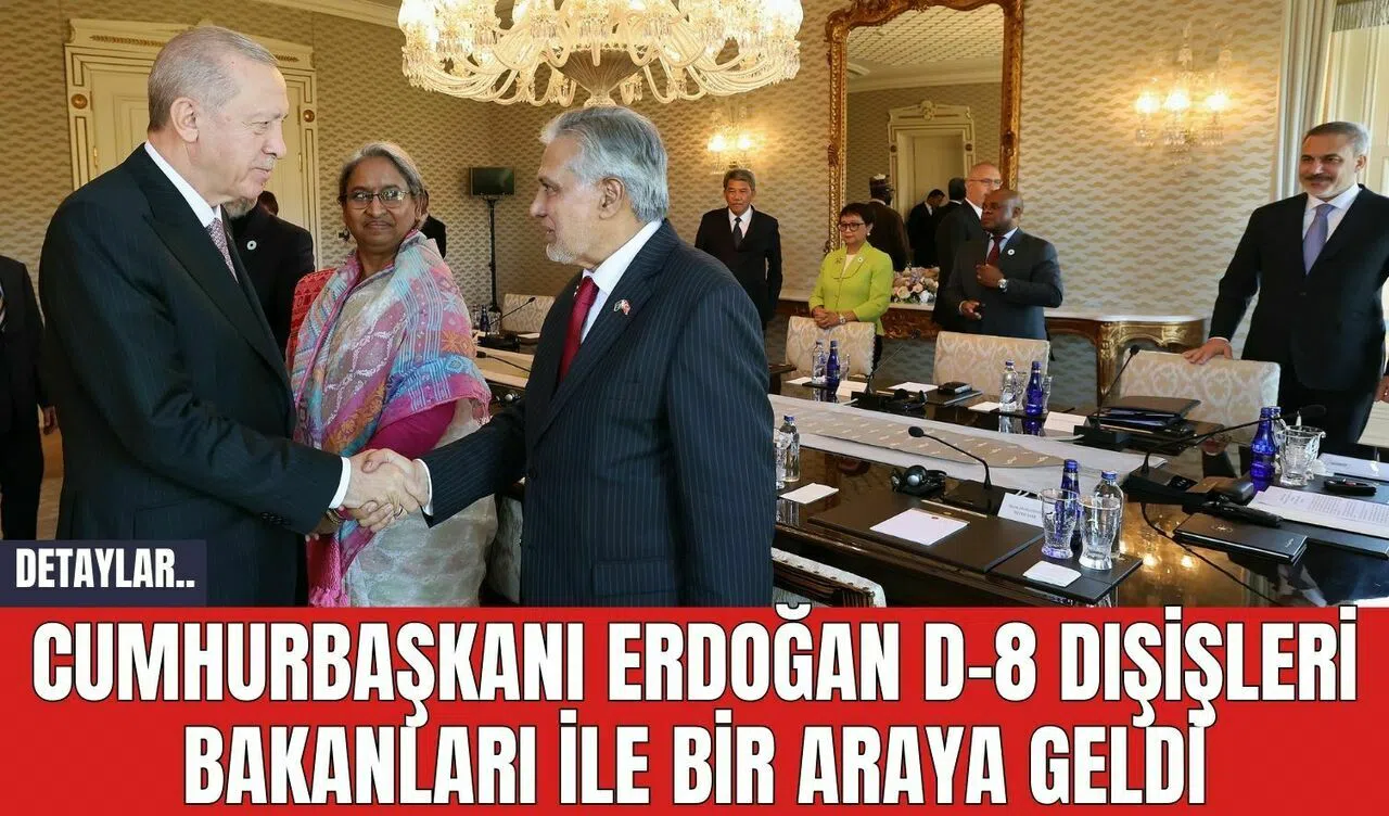 Cumhurbaşkanı Recep Tayyip Erdoğan, Vahdettin Köşkü'nde D-8 Ekonomik İşbirliği Teşkilatı Dışişleri Bakanlarını kabul etti. Kabul, basına kapalı olarak gerçekleşti. Dışişleri Bakanı Hakan Fidan ve Cumhurbaşkanı Güvenlik ve Dış Politika Başdanışmanı Akif Çağatay Kılıç, kabulde yer aldılar.