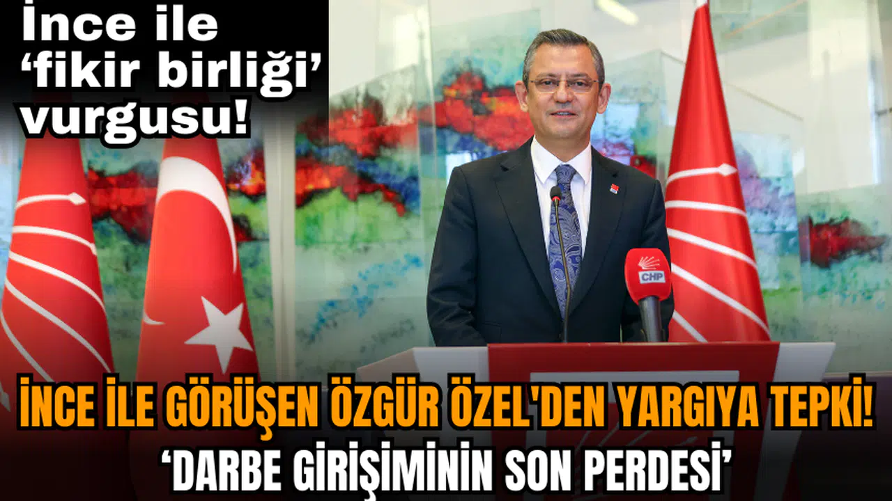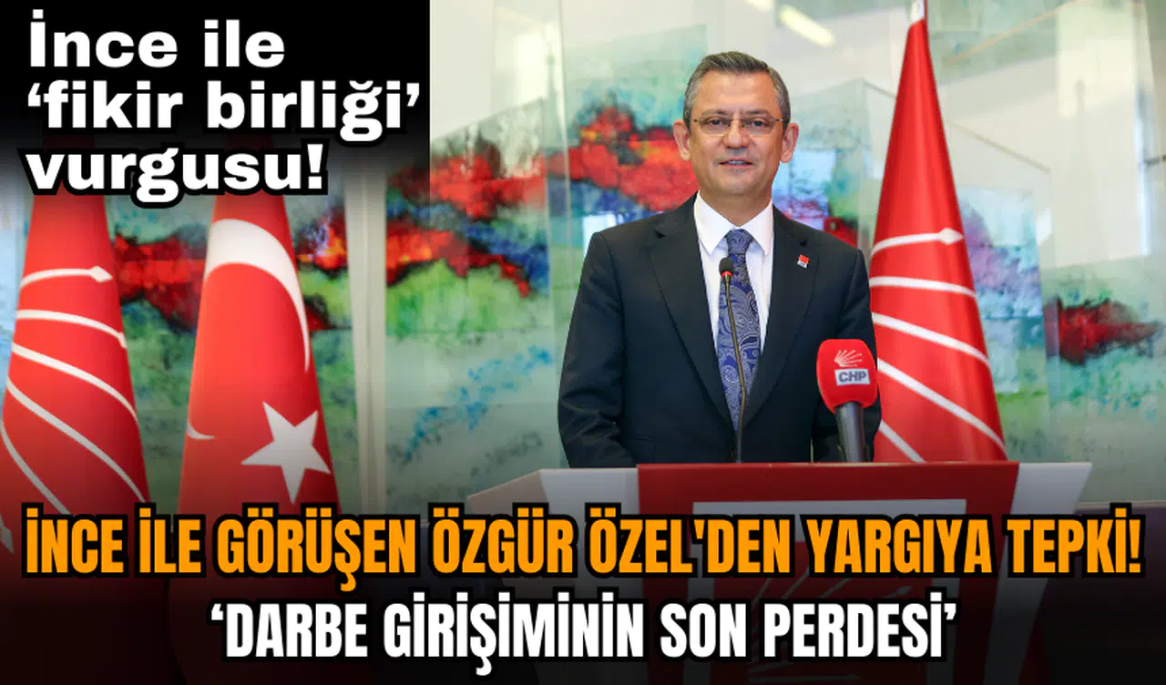 Memleket Partisi Genel Başkanı Muharrem İnce, Cumhuriyet Halk Partisi (CHP) Genel Başkanı Özgür Özel'i ziyaret etti. Özel ve İnce, görüşmelerinin ardından açıklama yaptı. Özgür Özel, Yargıtay 3. Ceza Dairesi'nin Can Atalay ,le ilgili Anayasa Mahkeme kararını tanımamasına sert tepki gösterdi. Özel, yaşananlar için, 'Dün Dün darbe girişiminin son perdesi oynandı.' dedi. Özer, İnce ile görüşmesinde fikir birliğine vardıklarına ilişkin vurgu yaptı.