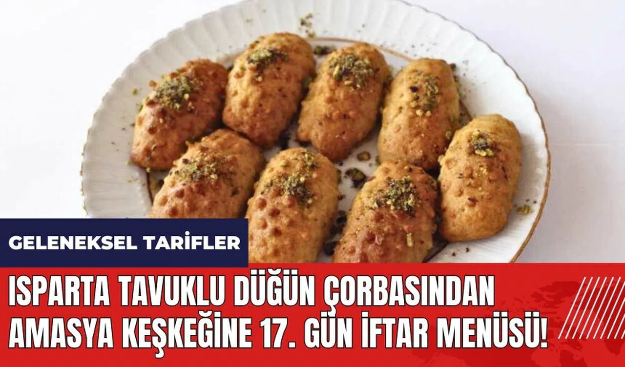 Ramazan ayında iftar menüsü vatandaşların en çok öneri araştırdığı konulardan biri. Ramazan ayının 17. gün iftar menüsü önerimizde; Tavuklu Düğün Çorbası, Araka, Amasya Keşkeği ve Kalburabastı var. Kültür Portalı'ndan Tavuklu Düğün Çorbası, Araka, Amasya Keşkeği, Kalburabastı tarifleri aşağıda...