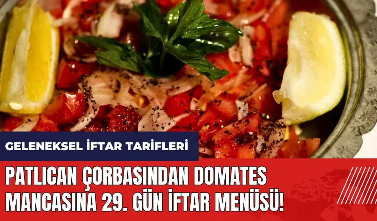 Ramazan ayında iftar menüsü vatandaşların en çok öneri araştırdığı konulardan biri. Ramazan ayının 29. gün iftar menüsünde; Patlıcan Çorbası, Domates Mancası, Et Kızartması, Şilke bulunuyor. Kültür Portalı'ndan Patlıcan Çorbası, Domates Mancası, Et Kızartması ve Şilke tatlısı tarifleri aşağıda...