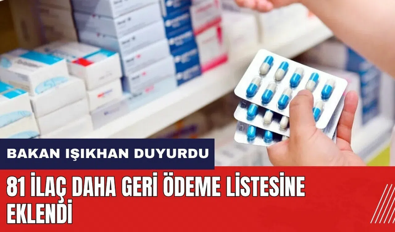 Çalışma ve Sosyal Güvenlik Bakanı Vedat Işıkhan, Çalışma ve Sosyal Güvenlik Bakanlığı’nın geri ödeme listesine 81 ilacın daha alındığını duyurdu. Geri ödeme kapsamına alınanlar arasında; kanser, diyabet, epilepsi, obezite, hipertansiyon ve alerji tedavisinde kullanılan ilaçlar yer alıyor.