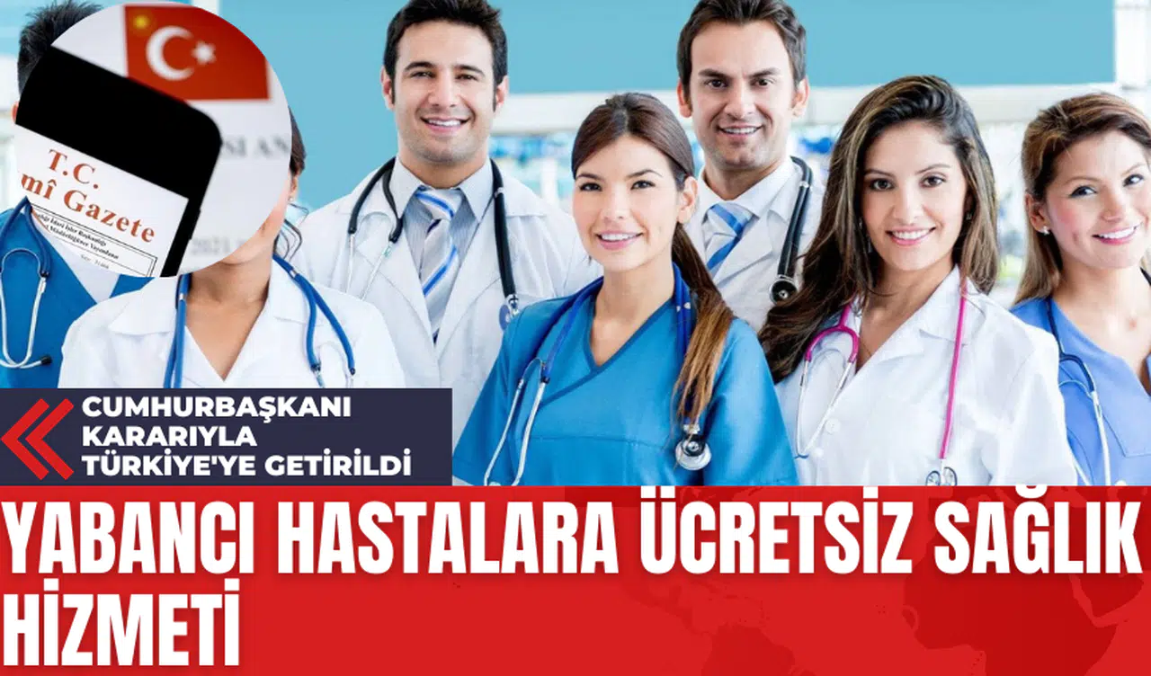 Cumhurbaşkanı tarafından alınan karar ile Dışişleri tarafından Türkiye'ye tedavi için getirilecek yabancı hastalara ücretsiz sağlık hizmeti sunulacak. Resmi Gazete'de yayımlanan karara göre, Sağlık Bakanlığı ve devlete ait üniversite hastanelerinde yapılmak şartıyla, Türkiye'ye getirilen en fazla 2 bin yabancı hastaya ücretsiz sağlık hizmeti verilebilecek. Bu kapsamda, ilaç, tıbbi cihaz ve protez gibi sağlık giderleri de ücretsiz ya da indirimli olarak karşılanacak.