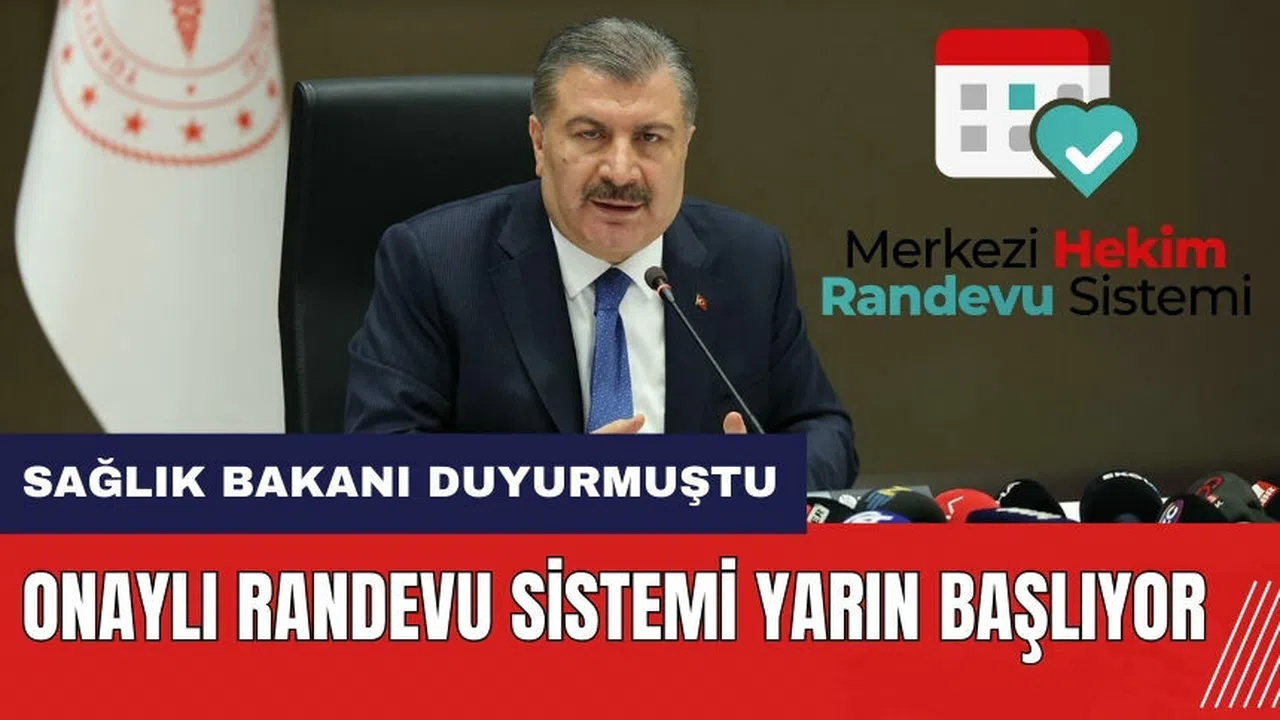 Sağlık Bakanı Fahrettin Koca'nın 9 Mayıs Perşembe günü gerçekleştirilen Ulusal Sağlık Değerlendirme ve Koordinasyon Toplantısı'nda duyurduğu onaylı randevu sistemi, yarın itibarıyla kullanıma açılacak. Bu yeni sistemle birlikte, hastalar randevu gününden bir gün önce saat 20.00'ye kadar MHRS uygulaması ya da ALO 182 çağrı merkezi aracılığıyla randevularını onaylayacak veya iptal edecekler.