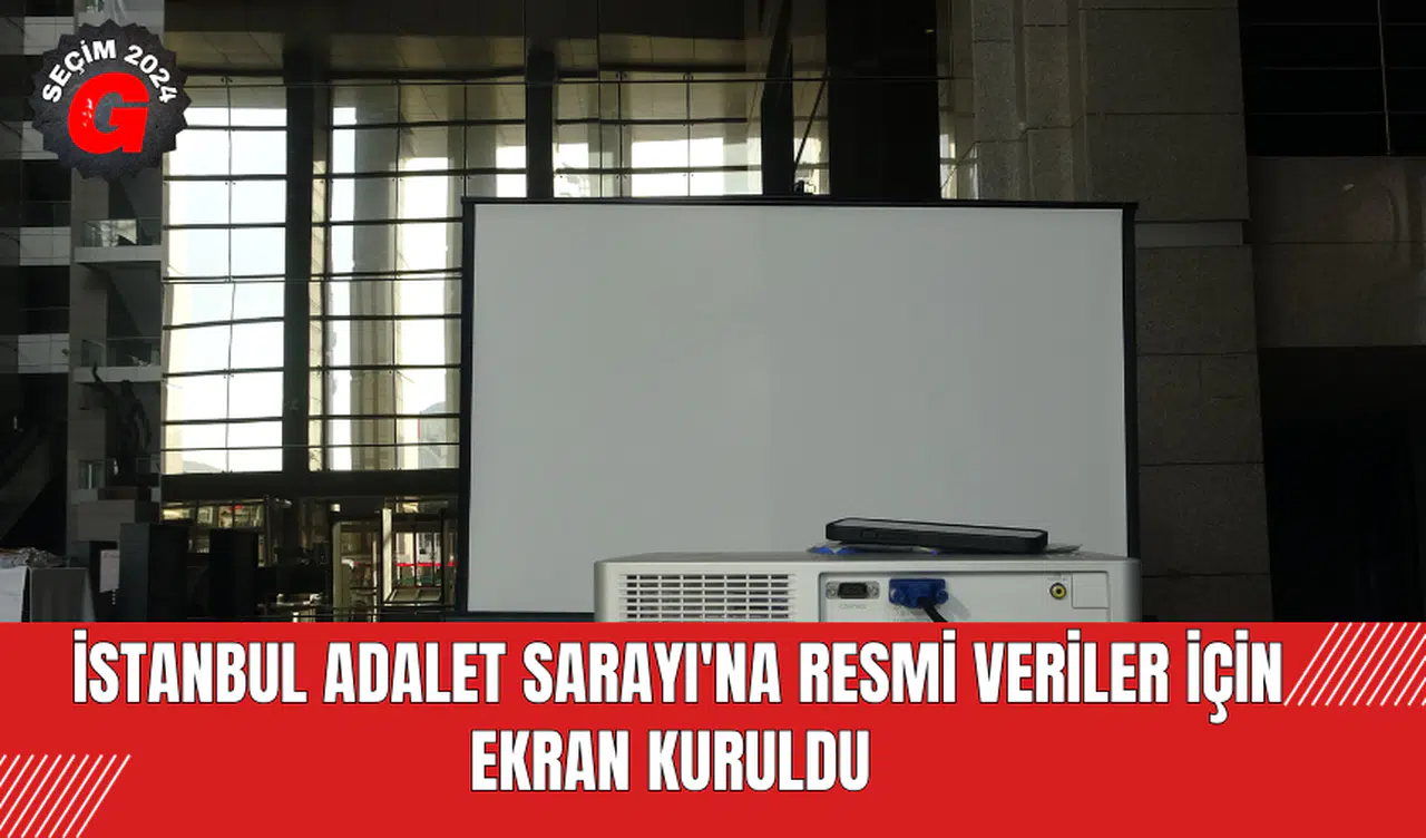 İstanbul Adalet Sarayı'nın atrium alanına Yüksek Seçim Kurulu resmi sonuçlarını yansıtmak için büyük bir ekran kuruldu. Yayın yasağının kaldırılmasıyla birlikte, seçim verileri bu büyük ekrandan canlı olarak takip edilebilecek. Ayrıca, İstanbul 15. Asliye Hukuk Mahkemesi hakimi Ramazan Seçkin'in, İstanbul İl Seçim Kurulu'na başkanlık ettiği bilgisi de adliyede bulunanlar arasında yer alıyor.