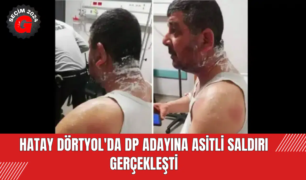 Hatay'ın Dörtyol ilçesinde Demokrat Partili meclis üyesi adayı Oğuzhan Lök, dün gece MHP'li adayın eşinin dayısı tarafından asitli saldırıya maruz kaldı. Saldırgan, emniyet güçleri tarafından gözaltına alındı.