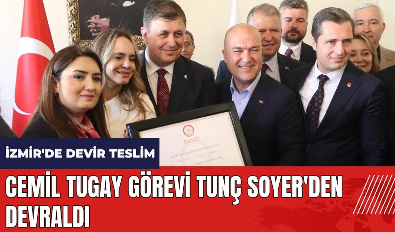 İzmir Büyükşehir Belediye Başkanı seçilen Cemil Tugay, devir teslim töreninde yaptığı konuşmada, ülkenin içinde bulunduğu zorlukların ve insanların yaşadığı sorunların farkında olduklarını belirtti. Tugay, 'Sorun neredeyse oradayız, çözüm için ne yapmamız gerekiyorsa onu yapacağız' dedi. Devir teslim törenine, milletvekilleri, ilçe belediye başkanları ve büyükşehir bürokratlarının da katıldığı öğrenildi.
