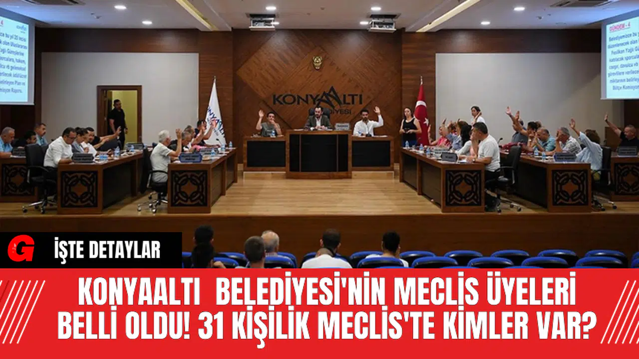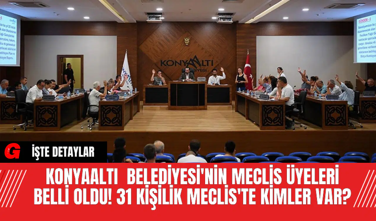 Sonuçlara göre; 31 Mart Yerel Seçim sonrası Konyaaltı Belediyesi'nin meclisi ile Konyaaltı 'den Antalya Büyükşehir Belediyesi Meclisi'ne gidecek olan asil ve yedek üyeler de belirlendi. Konyaaltı Belediye Meclis’inde 31 meclis üyesi bulunuyor. 31 meclis üyesinin 25'i Cumhuriyet Halk Partili isimlerden oluşurken, 7 meclis üyesi ise AK Parti'den seçildi.