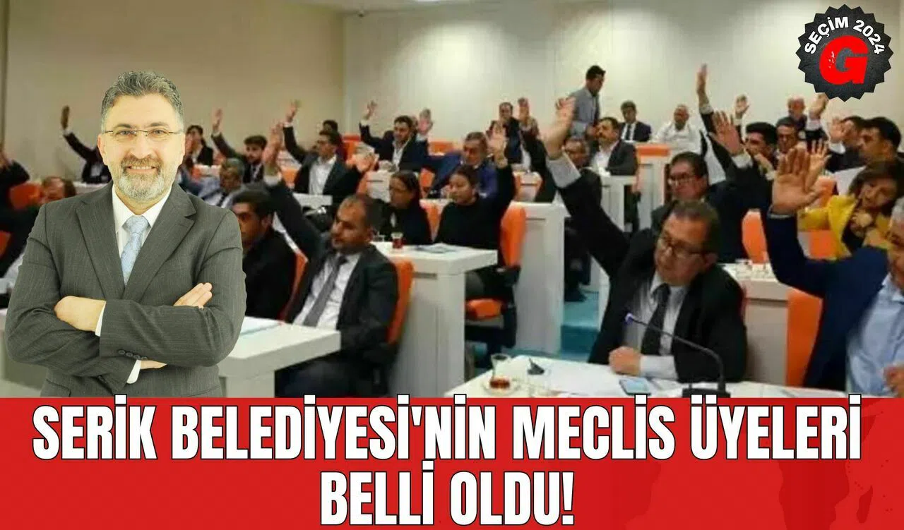 Antalya'nın Serik İlçesinde Belediye Meclis Üyeliği için yapılan oylamada CHP 33 bin 440, AKP 23 bin 158, İYİ Parti ise 9 bin 887 oy alarak meclise üye seçildi. CHP, 17 asil ve 3 yedek kontenjan olmak üzere toplamda 20 meclis üyesi çıkarırken, AK Parti 10 meclis üyesi ile temsil edilecek. İYİ Parti ise 1 meclis üyesi ile mecliste yer alacak.