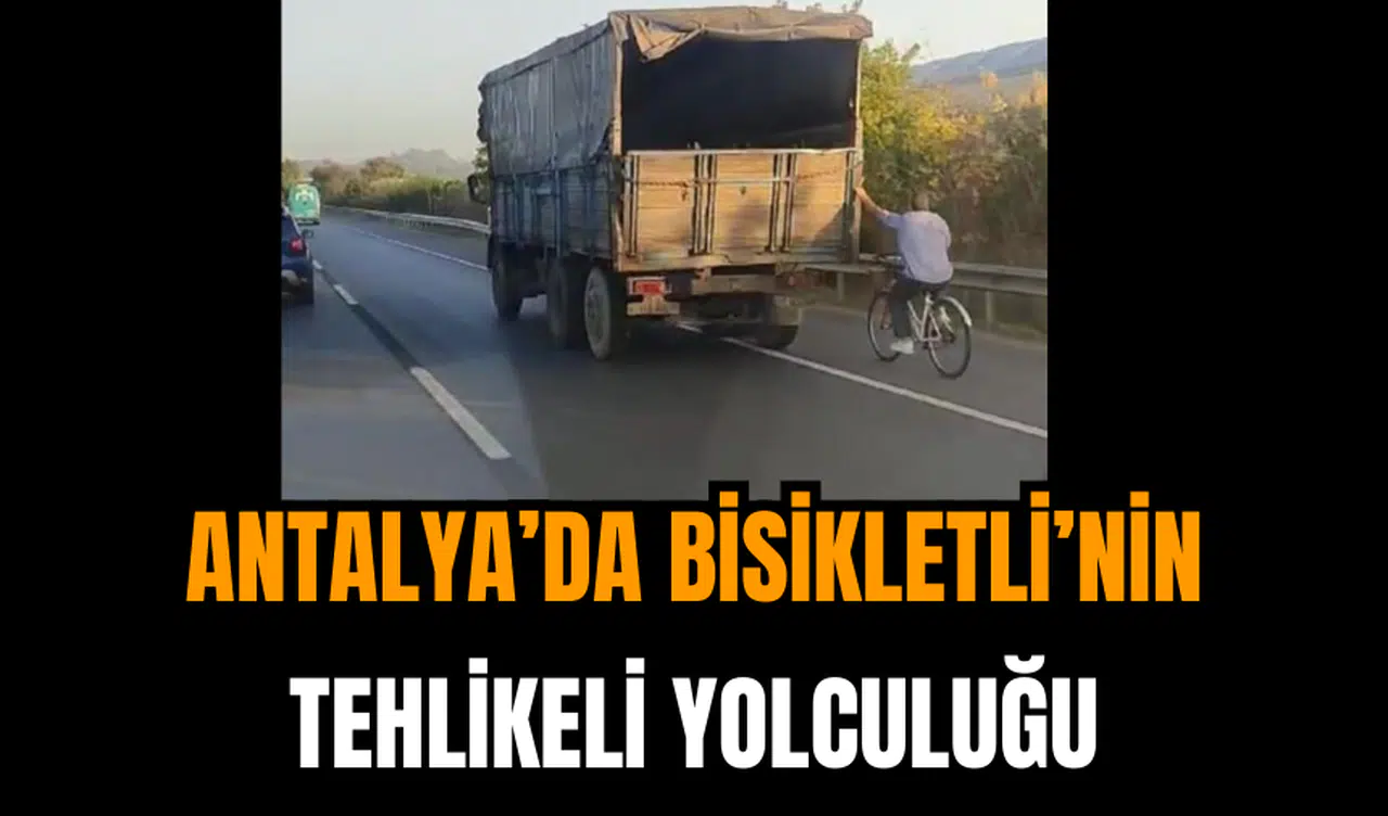 Antalya’nın Serik ilçesinde D-400 Karayolu’nda yaşanan bir olay, yürekleri ağza getirdi. Önünde hızla giden bir kamyonun arkasına tutunan bisiklet sürücüsü, tehlikeli bir yolculuk yaptı.