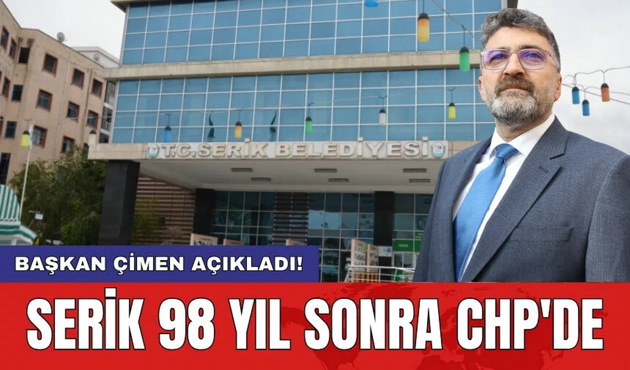 Cumhuriyet Halk Partisi (CHP) Serik İlçe Başkanı Şeref Çimen, 31 Mart 2024 Yerel Seçimleri'nin ardından yaptığı açıklamada "Hep birlikte başardık, hep birlikte kazandık... " dedi. Başkan Çimen, 98 yıl sonra CHP'nin Serik'te kazandığını ifade ederek "98 yıl sonra ilçemize sosyal demokrat bir belediyeciliği kazandıran bir ekibin parçası ve Şerefli ilçe başkanlığı görevini sürdüren bir kardeşiniz olarak çok gururlu ve mutluyum" dedi.