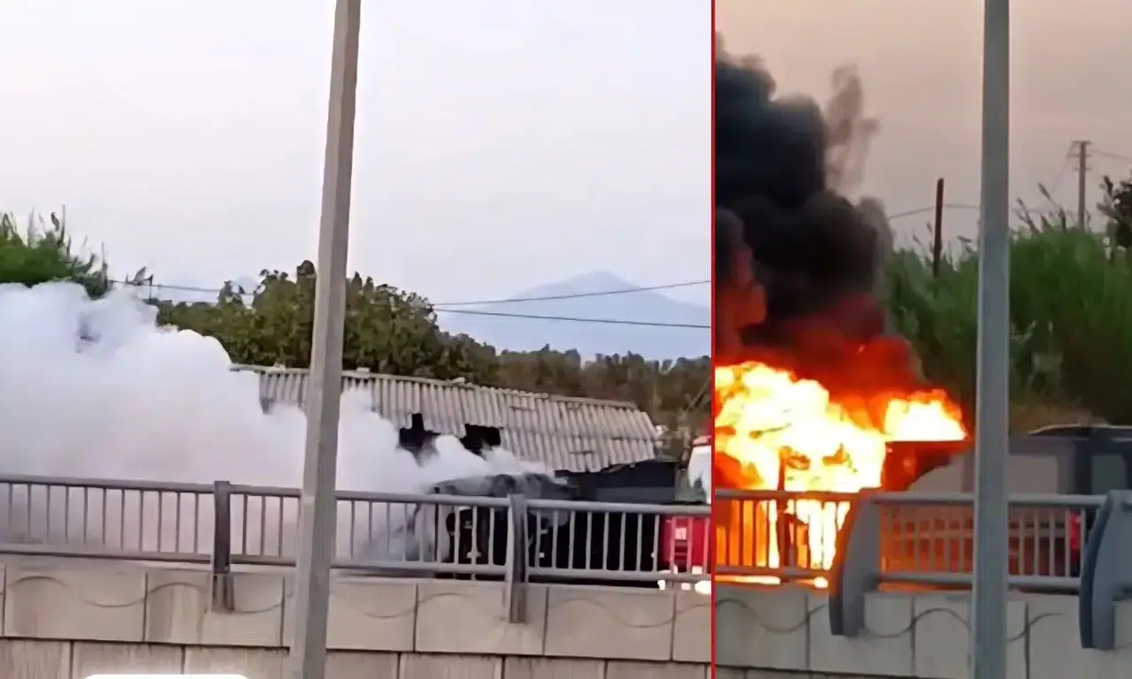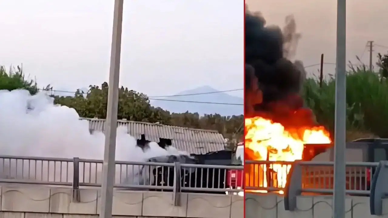 Antalya'nın Serik ilçesinde trafikte korku dolu anlar yaşandı. Dikmen Kavşağı'nda seyir halinde olan 07 HTD 32 plakalı tur minibüsünün motor kısmından bir anda alevler yükseldi. Sürücü aracı anında durdurdu.