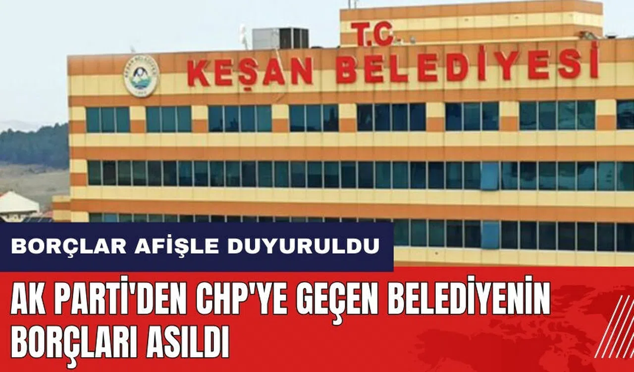 Edirne'nin Keşan ilçesindeki belediye başkanı Mehmet Özcan, AK Parti'den Cumhuriyet Halk Partisi'ne (CHP) geçişiyle gündeme gelen ve önceki dönemden kalan borçları belediye binasına asılan bir afişle kamuoyuna duyurdu