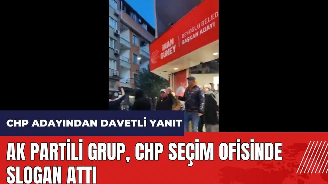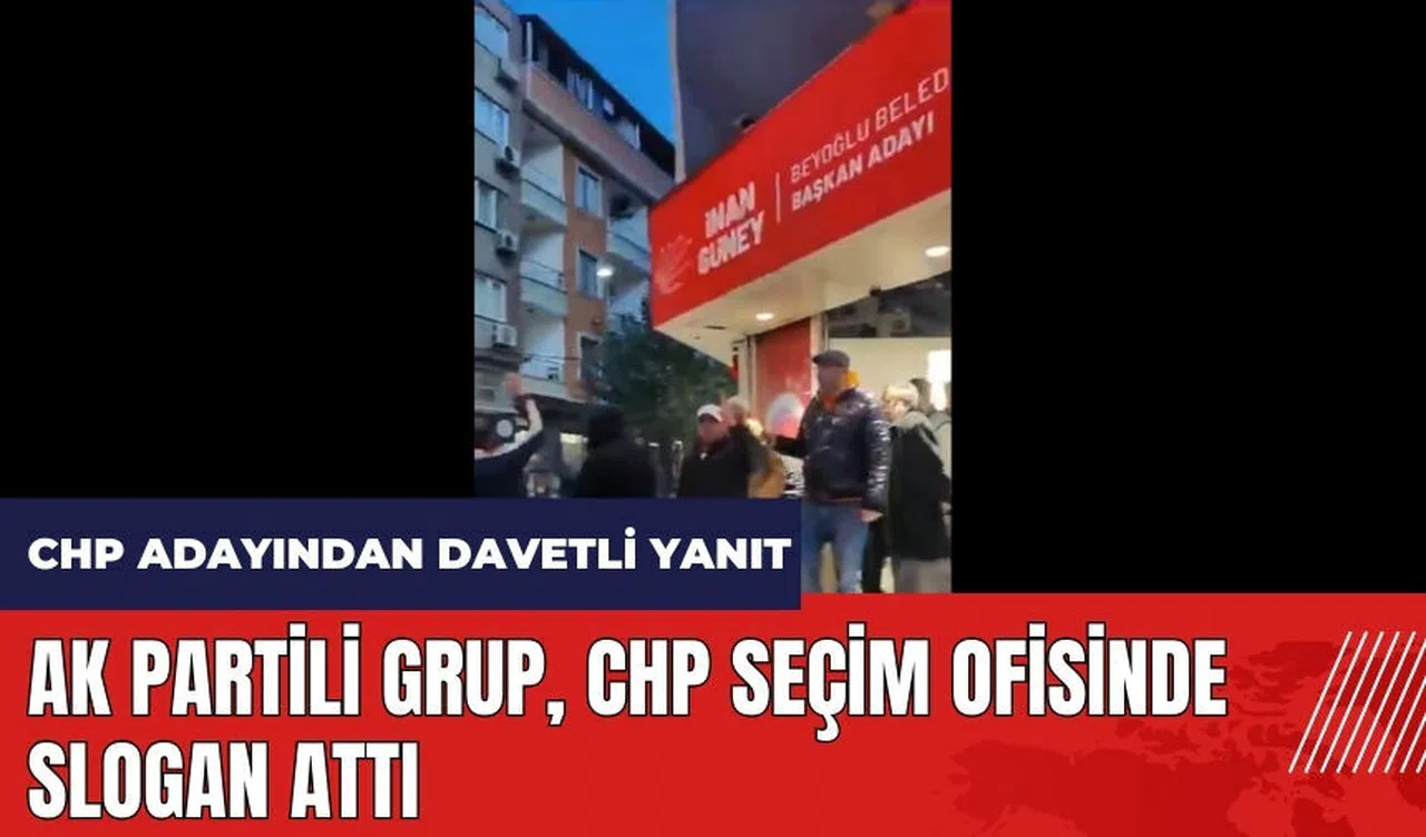 İstanbul'un Kasımpaşa semtinde, AK Parti'ye bağlı bir grup, CHP'nin seçim ofisine girerek sloganlar attı. CHP Beyoğlu Belediye Başkan Adayı İnan Güney, konuyla ilgili sosyal medya üzerinden bir açıklama yaparken, o vatandaşları davet etti.