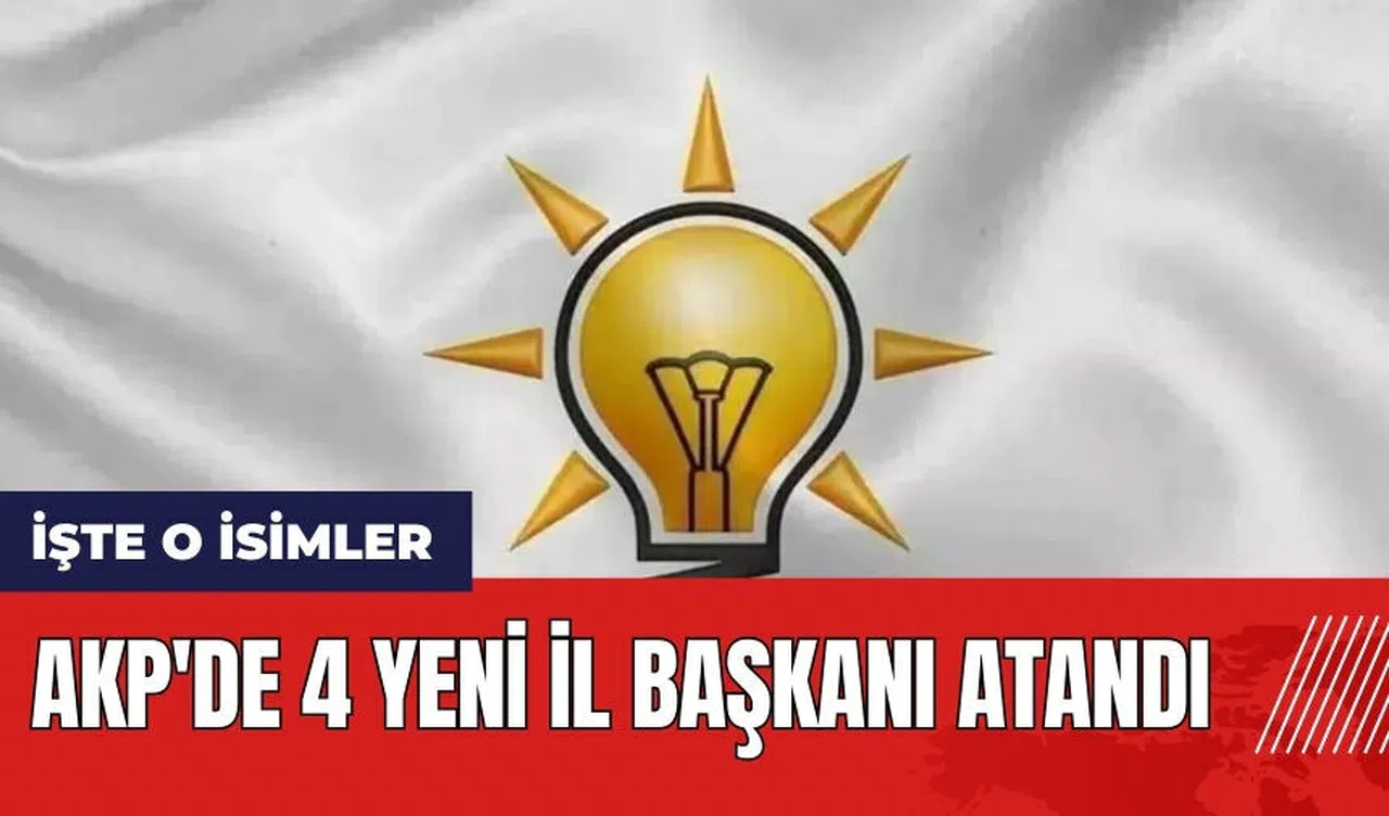 AKP Teşkilat Başkanlığı, Rize, Şanlıurfa, Mardin ve Kahramanmaraş'a yeni il başkanlarının atandığını duyurdu. Yeni atamalar, teşkilatın sosyal medya hesaplarından paylaşıldı.