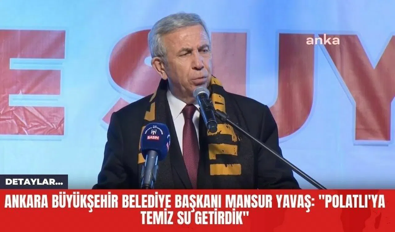 Ankara Büyükşehir Belediye (ABB) Başkanı Mansur Yavaş, iktidarın gerçekleştiremediği projeleri hayata geçirdiklerine dikkat çekti. Yavaş, "Polatlı’ya temiz suyu biz getirdik. Siz halka pahalı su satıp oradan aldığınız paraları çöp projelere yatırırken Polatlı halkı su çilesi çekiyordu. Polatlı halkı sizden bu projeyi istiyordu. 30 yıldır aklınız neredeydi? Bana, 'Bu dönemde yaptığın en büyük proje ne' derlerse, Polatlı'ya su getirmek diyeceğim" dedi.