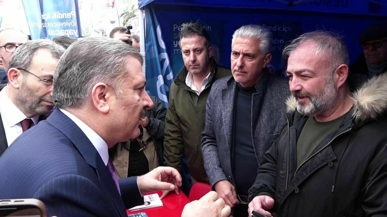 Sağlık Bakanı Fahrettin Koca, Pendik'te vatandaşlarla buluştu. Pendik Belediye Başkanı Ahmet Cin ile birlikte sahil meydanında bulunan alanda kurulan siyasi partilerin stantlarını ziyaret eden Bakan Koca, daha sonra Pendikli esnafı ziyaret etti. Parti stantlarını ziyareti sırasında bir vatandaş Bakan Koca’ya “LÖSANTE’ye neden tam ruhsat vermiyorsunuz?” şeklinde soru yöneltti.