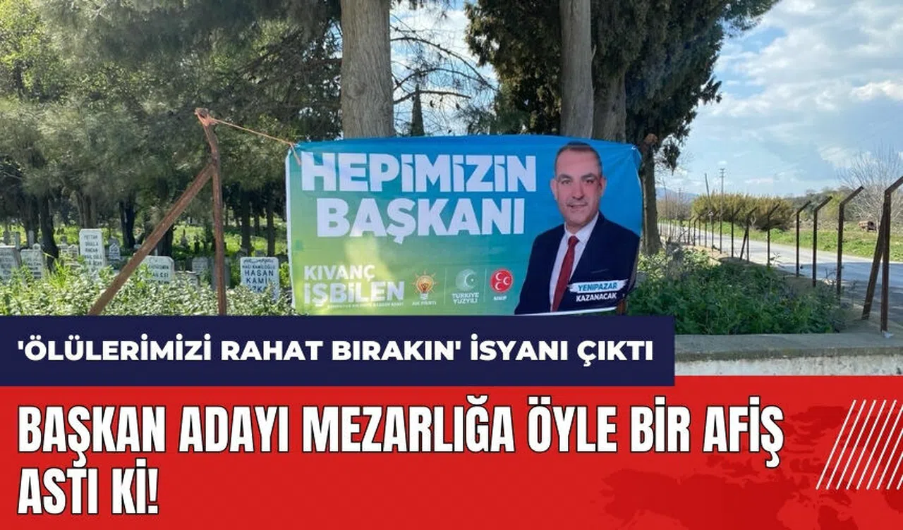 Aydın'da 31 Mart yerel seçimleri yaklaşırken, adaylar 1 oy fazla alabilmek için çeşitli yolları denemeye devam ediyor. Yenipazar İlçesi'nde AK Parti'den Belediye Başkan Adayı olan Kıvanç İşbilen, seçim kampanyası kapsamında kendi fotoğrafını taşıyan ve üzerinde 'Hepimizin Başkanı' yazılı siyasi pankartını Hamzabili Mezarlığı'na astı. Ancak bu olay, bazı köylülerin tepkisine neden oldu.
