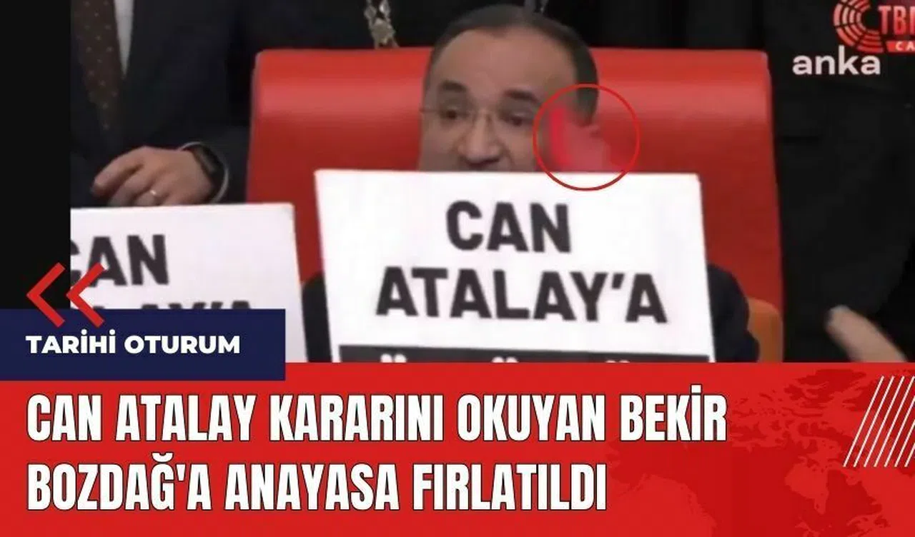 Can Atalay'ın milletvekilliği, Türkiye Büyük Millet Meclisinde hakkındaki kararın okutulmasının ardından düşürüldü. Kararı okuyan Bekir Bozdağ'a Anayasa kitapçığı fırlatılması dikkat çekti.