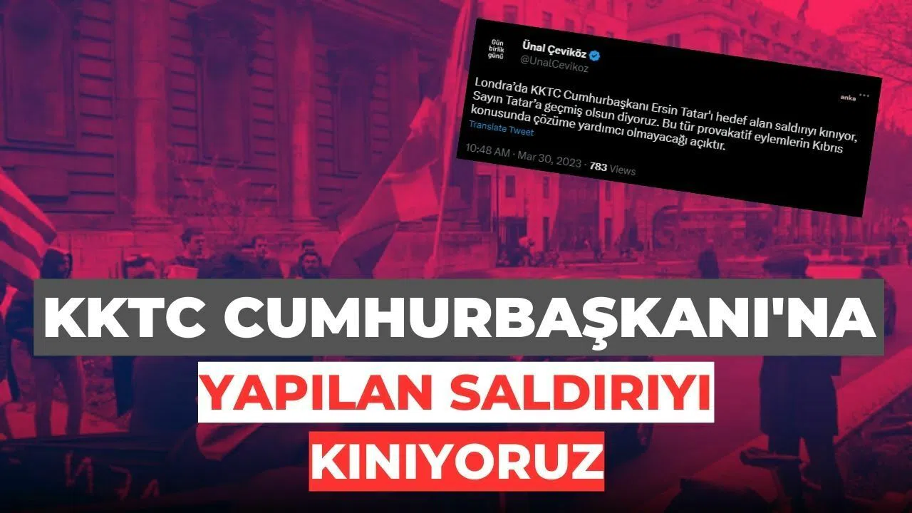 “Londra’da KKTC Cumhurbaşkanı Ersin Tatar'ı hedef alan saldırıyı kınıyor, Sayın Tatar’a geçmiş olsun diyoruz. Bu tür provakatif eylemlerin Kıbrıs konusunda çözüme yardımcı olmayacağı açıktır.”