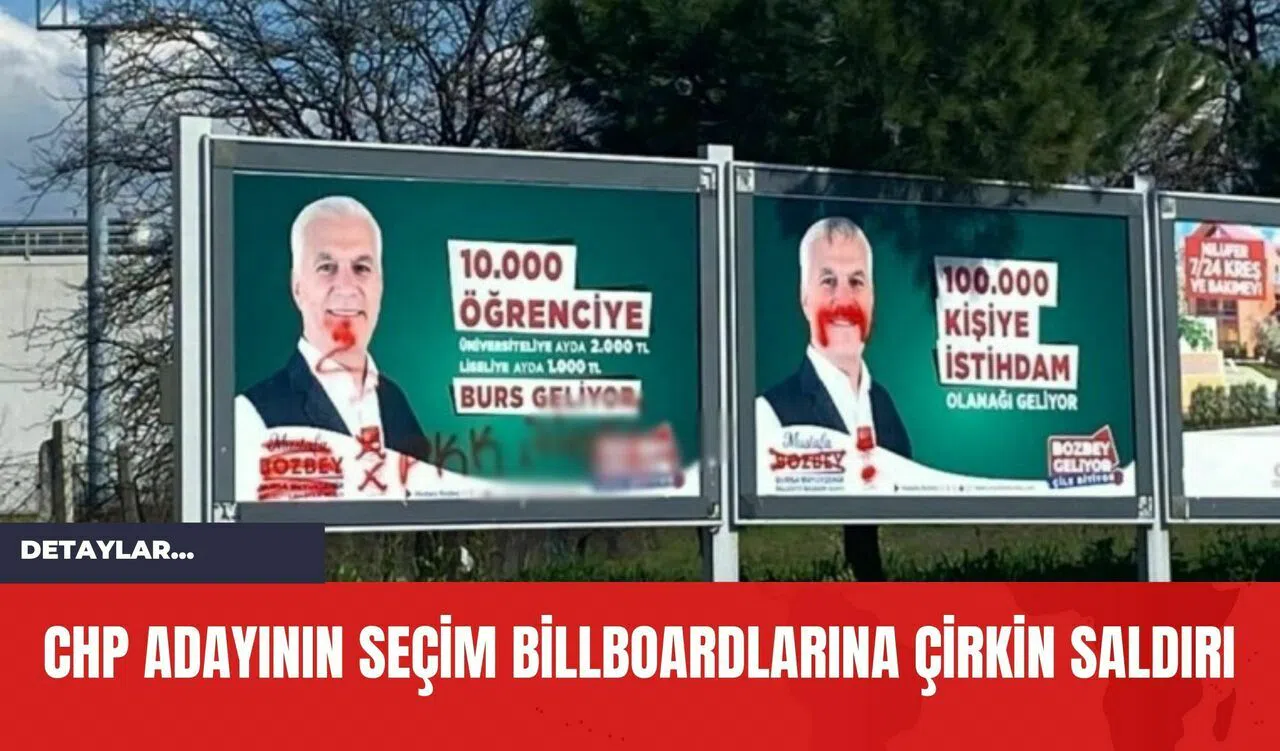 CHP'nin Bursa Büyükşehir ve Nilüfer Belediye Başkan Adaylarına ait seçim afişleri ve billboardlarına Ata Bulvarı'nda çirkin bir saldırı gerçekleşti. Mustafa Bozbey ve Şadi Özdemir'in reklam görselleri, kırmızı sprey boyalarla uygunsuz kelimelerle işaretlendi.