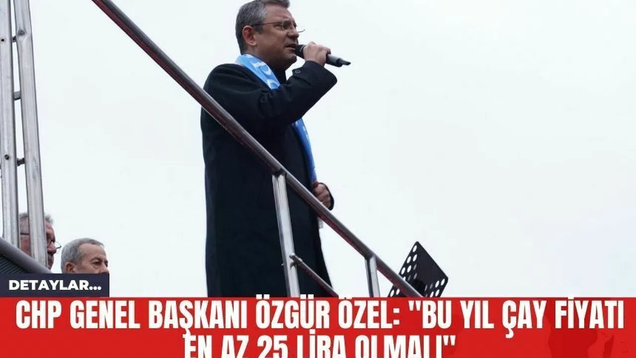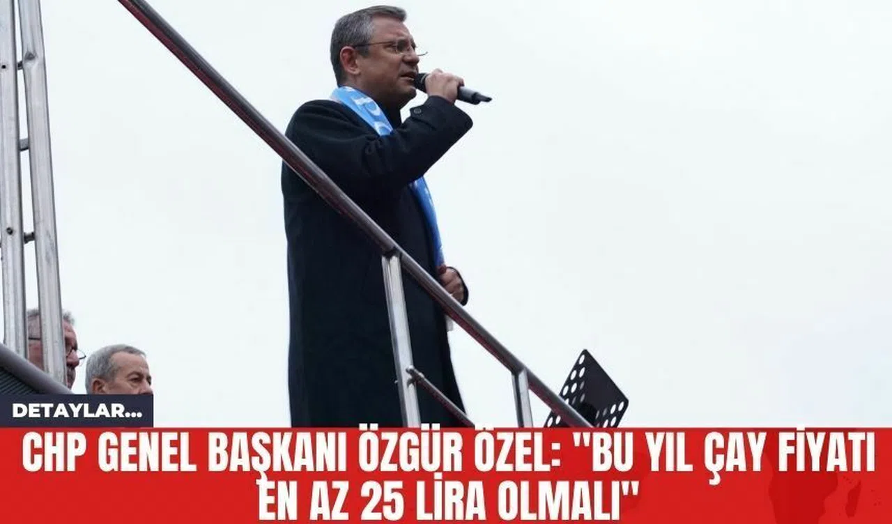 Özel, yaş çayın bu yılki asgari fiyatının en az 25 lira olması gerektiğine dikkat çekerek, milletvekillerinin hazırladığı çay kanunu teklifinin çay üreticilerini destekleyeceğini söyledi. Önerilen kanunun çay üreticilerinin lehine olduğunu belirten Özel, çayın taban fiyatının belirlenmesi gerektiğini ve ÇAYKUR'un açıkladığı fiyatın altında çay almanın cezalandırılması gerektiğini savundu.