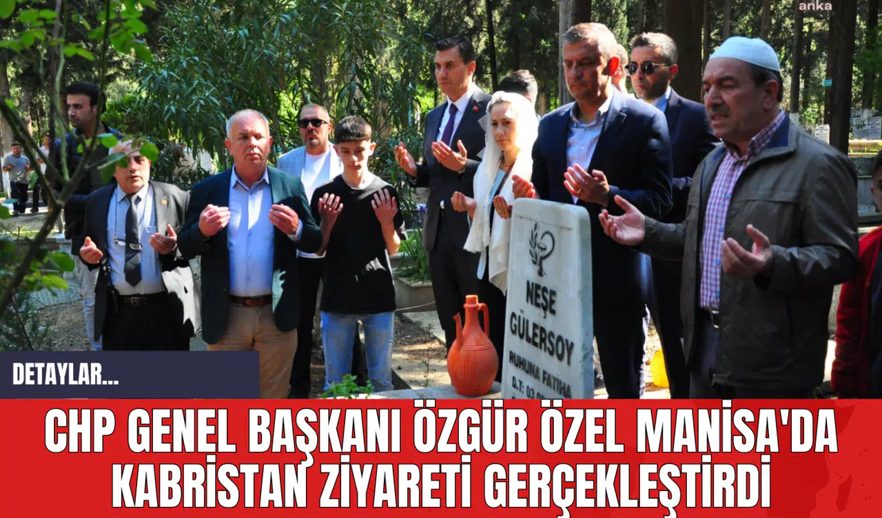 Cumhuriyet Halk Partisi(CHP) Genel Başkanı Özgür Özel, Ramazan Bayramı öncesinde memleketi Manisa’da kabristanı ziyaret etti. Şehzadeler ilçesi Çatal Mezarlığı'nda dedesi Agah Menemenlioğlu, anneannesi Sadriye Menemenlioğlu, Manisa Büyükşehir Belediye Başkanı Ferdi Zeyrek’in babası Ahmet Zeyrek ile 12 Eylül öncesi öldürülen eczacı meslektaşları Neşe Gülersoy ve Mete Erdem'in kabirlerini ziyaret ederek dua etti. Özel ayrıca, "Manisa Tarzanı" diye bilinen Ahmet Bedevi’nin kabrini de ziyaret etti.