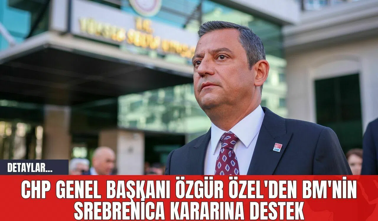 CHP Genel Başkanı Özgür Özel, Birleşmiş Milletler Genel Kurulu'nun, 11 Temmuz 1995'teki Srebrenica Katliamı'nı "soykırım" olarak tanıyarak 11 Temmuz'u Srebrenica Soykırımını Anma Günü ilan etme kararına ilişkin düşüncelerini sosyal medya üzerinden paylaştı. Özel, bu kararın kendisinde büyük bir memnuniyet uyandırdığını ifade etti.