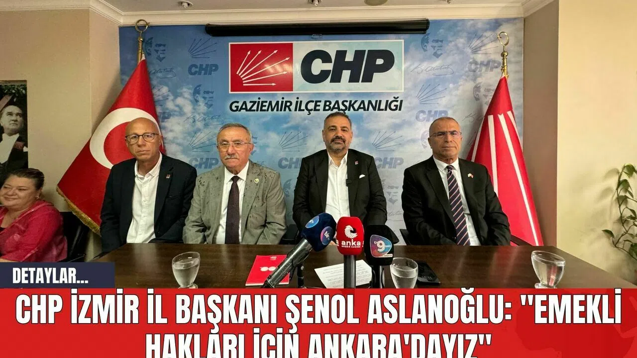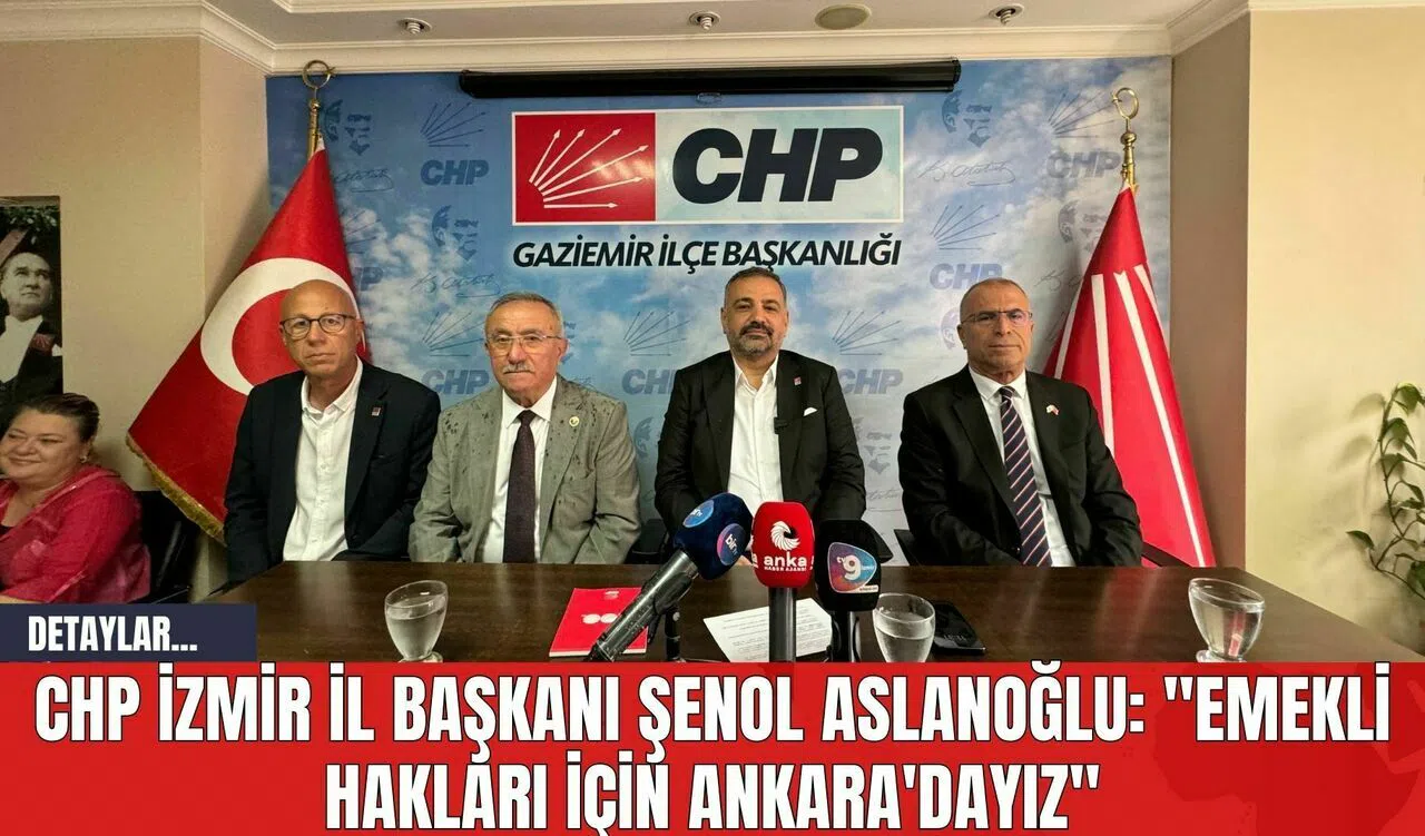 Ankara'da gerçekleştirilecek olan "Büyük Emekli Mitingi" öncesinde, CHP İzmir İl Başkanı Şenol Aslanoğlu, il yönetim kurulu üyeleri, Gaziemir İlçe Başkanı Kasım Özkan ve Gaziemir Belediye Başkanı Ünal Işık'la birlikte basın açıklamasında bulundu. Yoğun yağış nedeniyle planlanan açıklama, Gaziemir Abdullah Arda Meydanı yerine CHP Gaziemir İlçe Başkanlığı binasında gerçekleşti.