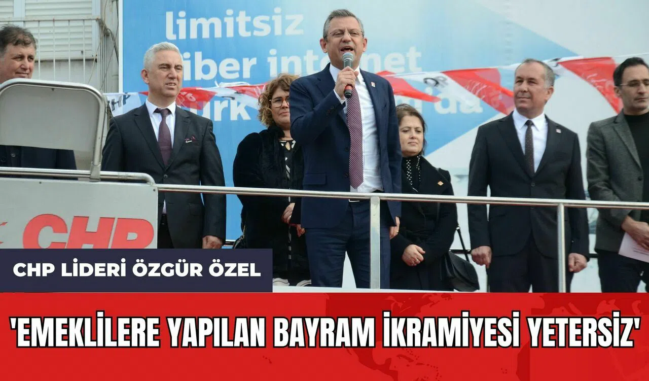 İzmir'in Bergama ilçesinde düzenlenen halk buluşmasında konuşan Cumhuriyet Halk Partisi (CHP) Genel Başkanı Özgür Özel, emeklilere yönelik belirlenen 3 bin TL'lik bayram ikramiyesine sert tepki gösterdi. Özel, "Biz asgari olarak 17 bin lira talep ediyoruz. Ancak yapılan açıklamada sadece 3 bin lira bayram ikramiyesi belirtildi. Bu durumda, ülkemizdeki yoksulluk, enflasyon ve hayat pahalılığı düşünüldüğünde, 1 kilo etin 600 lira olduğu bir dönemde, yapılan zam çok yetersiz kalmıştır. Bu kararın sorumlusu Recep Tayyip Erdoğan'dır." şeklinde konuştu.