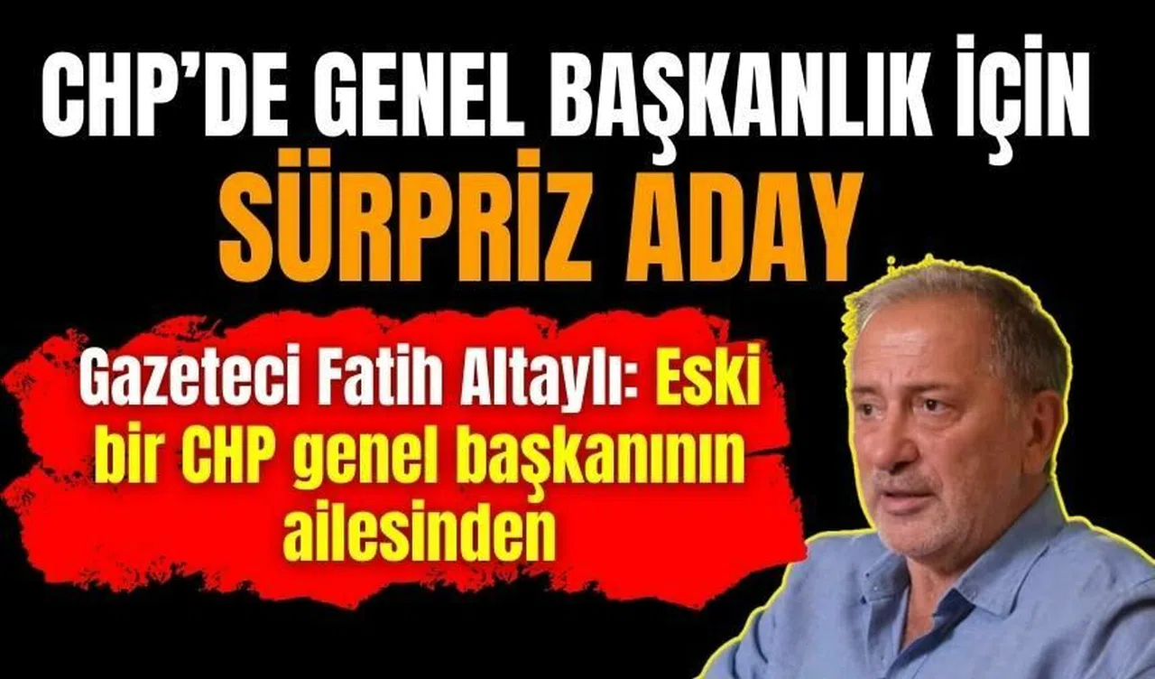 "CHP'de sürpriz bir genel başkan adayı ortaya çıkacak" diyen Fatih Altaylı, o sürpriz ismin kim olduğunu söylemedi ancak şöyle tarif etti: "CHP geleneğinden geliyor. Eski bir CHP genel başkanının ailesinden. Kamuoyunda tanınan saygın bir isim. Siyaset sahnesinde ilk defa göreceğiz."