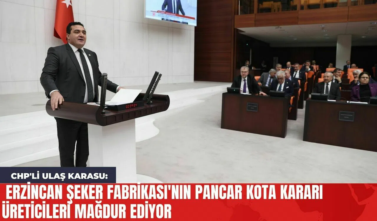 Ulaş Karasu, Erzincan Şeker Fabrikası Sukkar Şeker Üretim Anonim Şirketi'nin, Hafik ilçesindeki pancar üreticilerine yönelik kota kararını eleştirdi. Fabrikanın, üreticilere ekim taleplerini karşılayamayacakları gerekçesiyle kota uygulayacağını duyurmasının ardından Karasu, Tarım ve Orman Bakanı İbrahim Yumaklı'ya seslendi.
