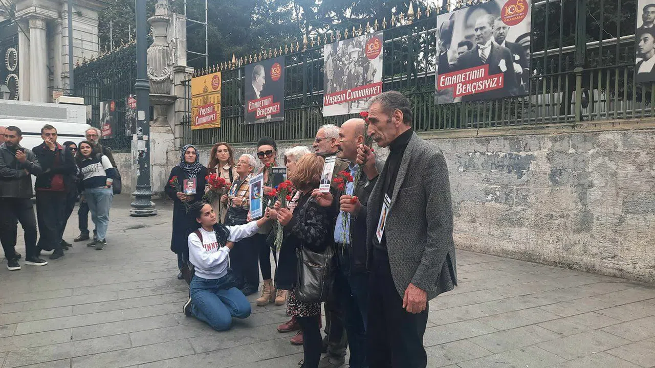 Cumartesi Anneleri'nin Galatasaray Meydanı'nda gerçekleştirdiği bu haftalık oturma eylemi, adalet ve insan hakları mücadelesinin sembolik bir parçası olmaya devam etti.