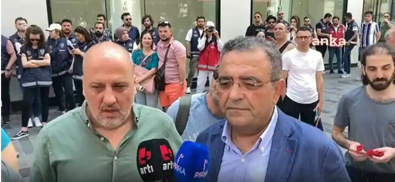 Ahmet Şık, polislere, “Polis memuru arkadaşlar, gazetecilerin önünü açın” diye seslendi. Tanrıkulu da basın mensupları aralarına polisin girmesine, “Aramızdan çekilin o zaman. Çekilin aramızdan” diyerek tepki gösterdi.