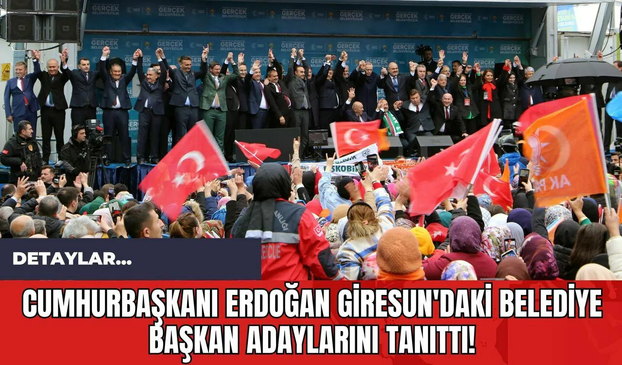 Konuşmasının ardından Cumhurbaşkanı Erdoğan, Giresun'un ilçe ve belde belediye başkan adaylarını tek tek tanıttı. Giresun'un ilçe ve belde belediye başkan adayları şöyle: