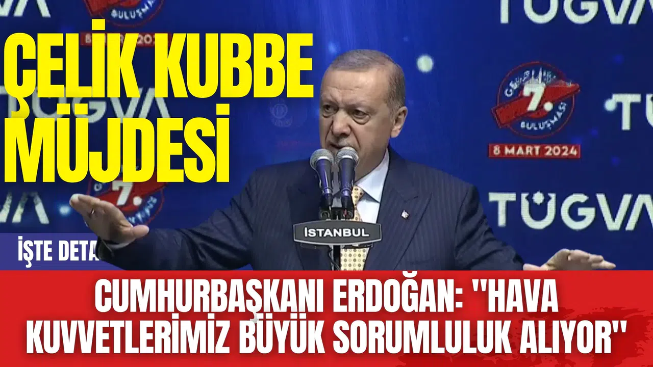 Erdoğan, konuşmasında Türkiye'nin savunma sanayisinde elde ettiği başarılara da değindi. Özellikle insansız hava araçlarında (İHA) yakalanan ivmenin tüm dünyada takdir edildiğini vurgulayan Cumhurbaşkanı, "50'yi aşkın ülkede Türk SİHA'ları kullanılıyor" dedi. Erdoğan, "Sistemler sistemi olarak geliştireceğimiz Çelik Kubbe projemizle, katmanlı hava savunma sistemlerimiz ve algılayıcılarımızı entegre ederek vatan savunmasında hava kuvvetlerimizin ihtiyaç duyduğu her şeyi üreteceğiz" diye ekledi.