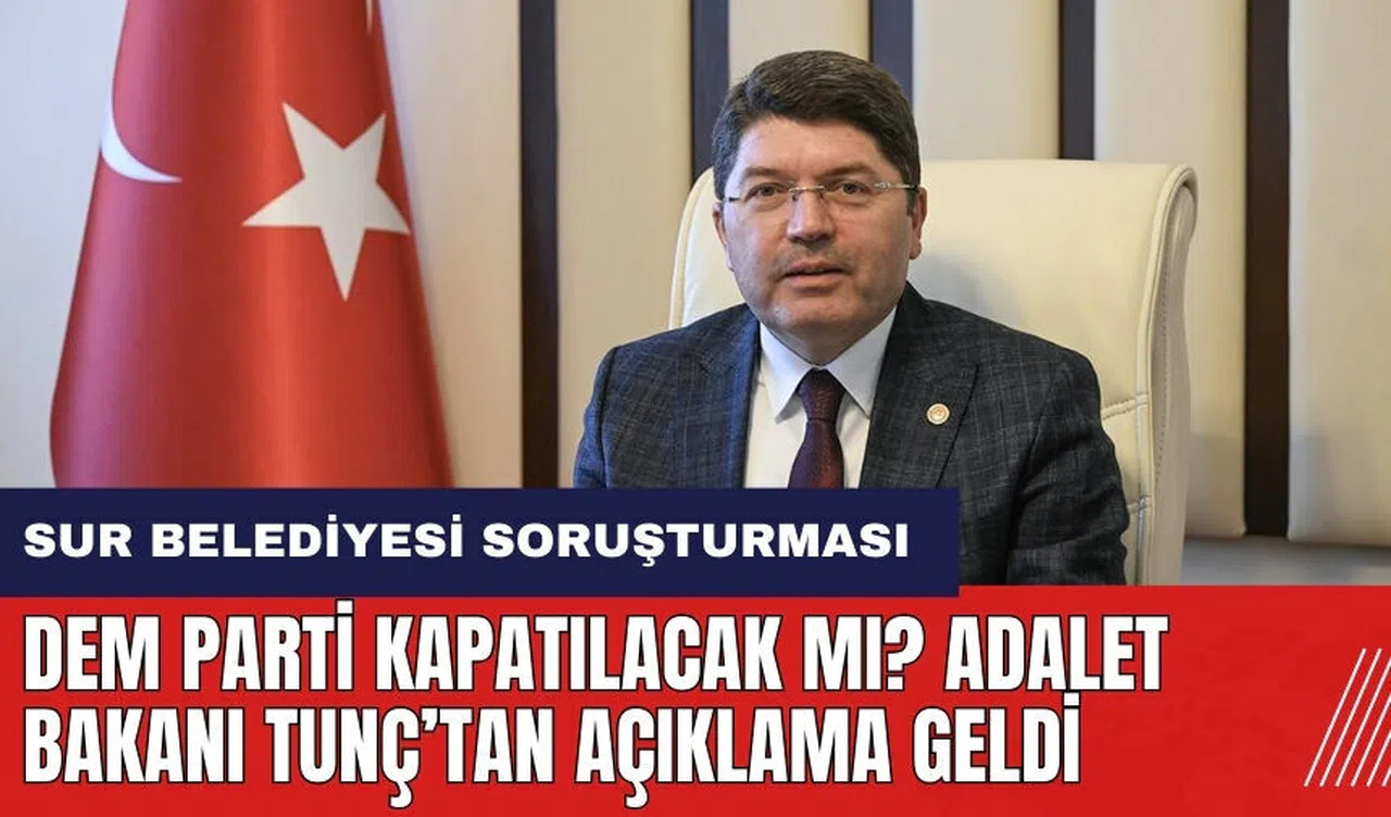 Adalet Bakanı Tunç, konuyla ilgili olarak, 'Diyarbakır Sur'da devam eden adli soruşturma var. Ülkemizin ve milletimizin birlik beraberliğiyle ilgili konularda sınırları zorlarsanız, adli ve idari soruşturmalarla karşı karşıya kalırsınız. Yasal mevzuat çerçevesi içinde bir belediye terörü destekliyorsa geçmişte uygulamalı gördük. Hiç kimse durduk yere kayyum atanmasını veya parti kapatılmasını ister mi? Millet düşmanlarına kaynakları aktarırsanız anayasa ve kanunlar çerçevesi içinde o yetkiler kullanılır. Bu yetkileri kullanmak zorunda kalmamalı. Millet size teröre destek olun diye oy vermiyor. Şiddete teşvik suç sayılır, fikir özgürlüğü kapsamında sayılmaz. DEM Parti aynı yolu izlerse, aynı muameleyle karşılaşır. DEM Parti teröre desteğe devam ederse kapatılabilir.' dedi.