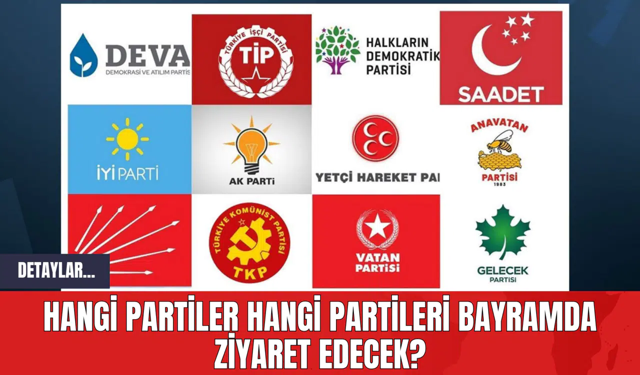 İYİ Parti ise Saadet Partisi, Demokrat Parti, CHP, AKP, Milli Yol Partisi, BBP, Gelecek Partisi, DEVA Partisi, Yeniden Refah Partisi ve BTP ile karşılıklı bayramlaşacak.