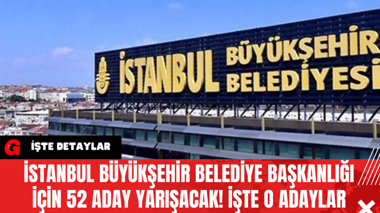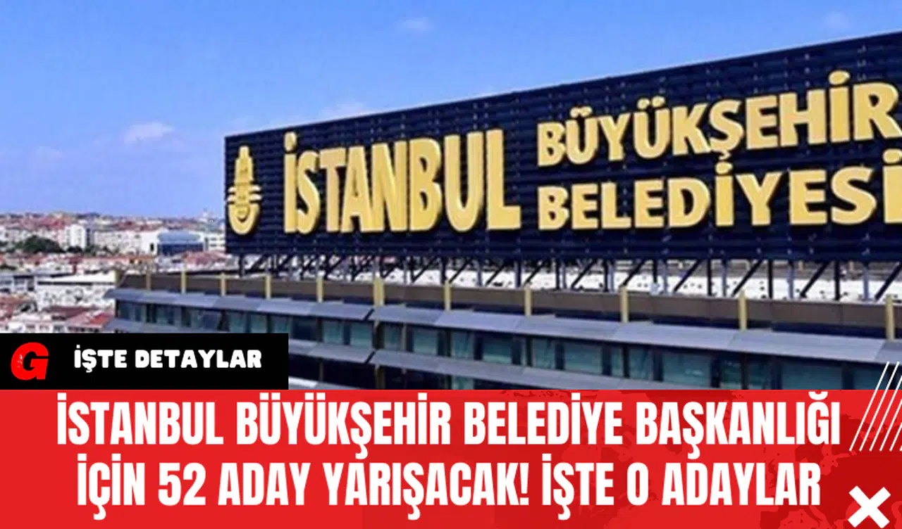 31 Mart’ta gerçekleştirilecek olan Mahalli İdareler Seçimleri için siyasi partilerin belediye başkan aday listelerini teslim etmesi için belirlenen süre, saat 17.00 itibariyle sona erdi. İstanbul Büyükşehir Belediye (İBB) Başkanlığı için toplamda 52 kişi, 22 siyasi parti adayı ve 30 bağımsız aday olmak üzere yarışacak.