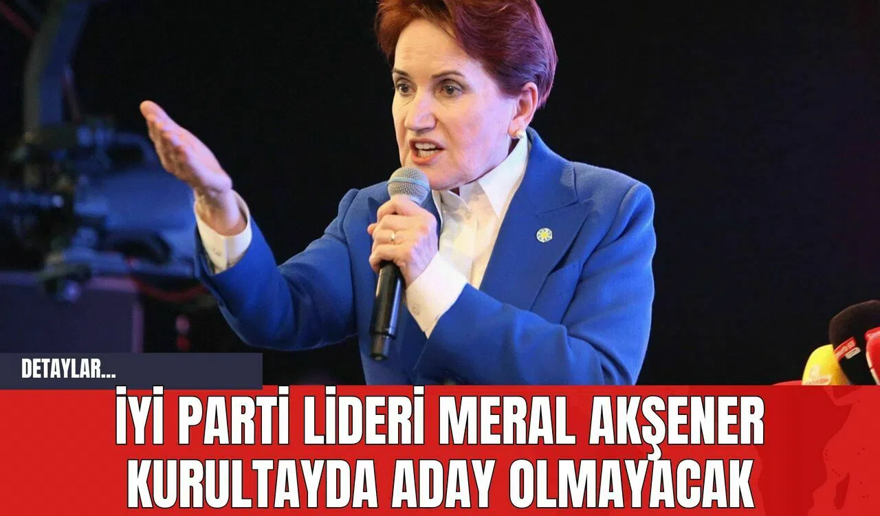 İYİ Parti Genel Başkanı Meral Akşener, 31 Mart Yerel Seçimleri'nin ardından yapılacak olağanüstü kurultayda genel başkanlığına aday olmayacağını açıkladı.
