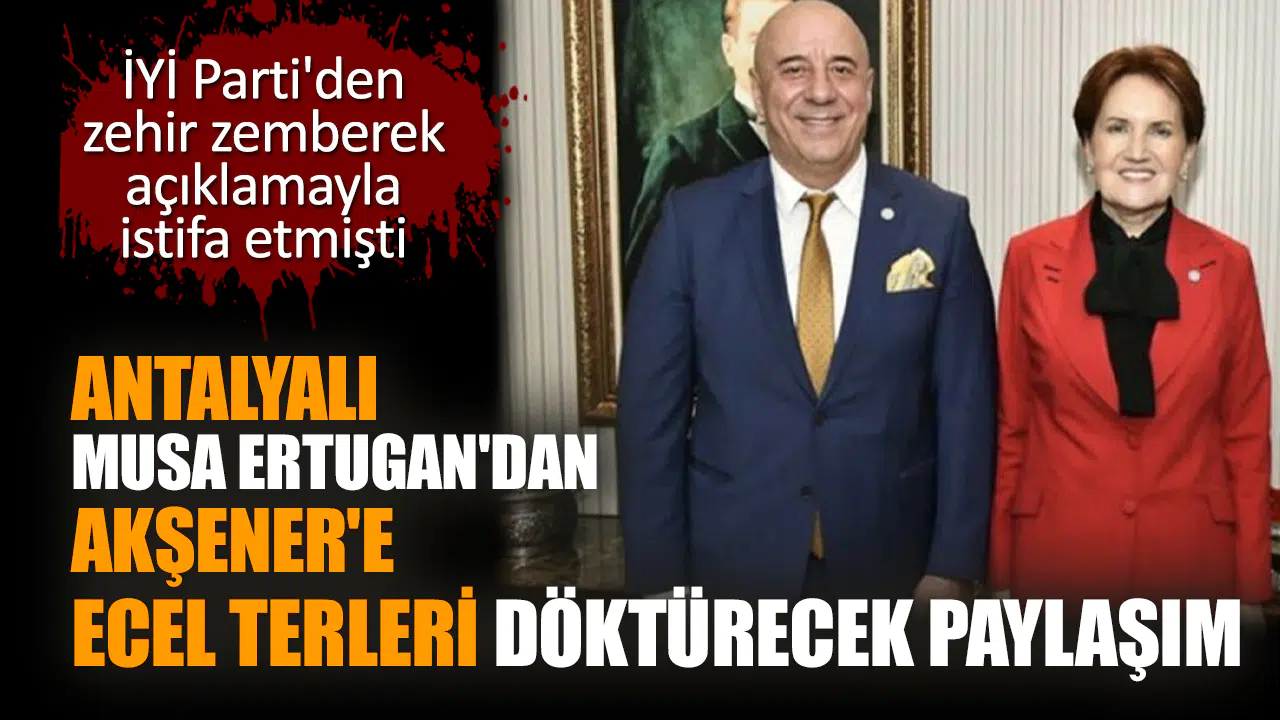 Genel Başkan Meral Akşener’e MHP’deki kurultay süreçlerinden beri destek veren ve İYİ Parti’nin kritik isimlerinden birisi olan Antalyalı iş adamı Musa Ertugan partisinden zehir zemberek açıklamalarda istifa etmişti.