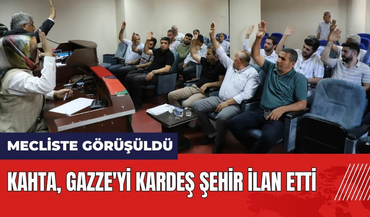 Adıyaman'ın Kahta Belediye Meclisi, Mehmet Can Hallaç başkanlığında toplandı ve Gazze'yi kardeş şehir ilan etme kararı aldı. Ayrıca, Gazze'nin bir sokağının alt ve üst yapısının yapılması planlandı.
