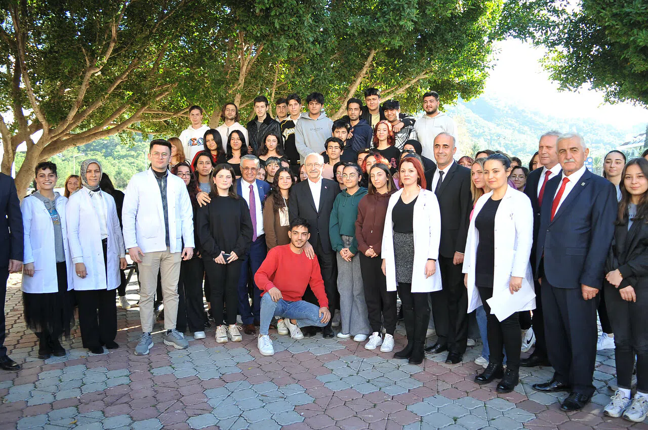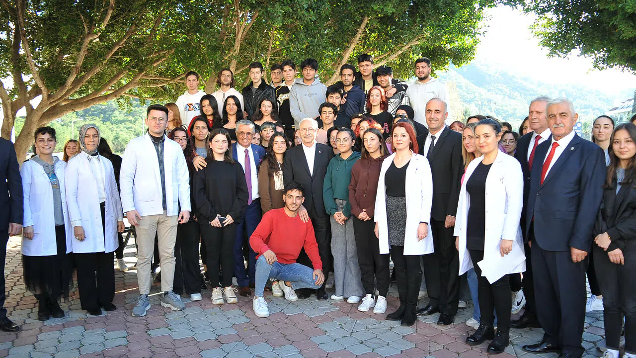 Öğrencilerin sorularını da cevaplayan Kılıçdaroğlu, kurs merkezi çıkışında öğrencilerle hatıra fotoğrafı çektirdi.