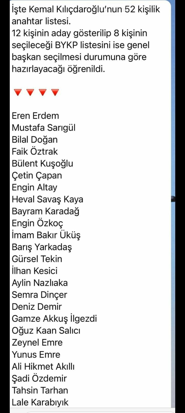 İddiaya göre Kemal Kılıçdaroğlu’nun genel başkan seçilmesi durumunda 8 kişilik Bilim Yönetim ve Kültür Platformu (BYKP) listesi belli oldu.