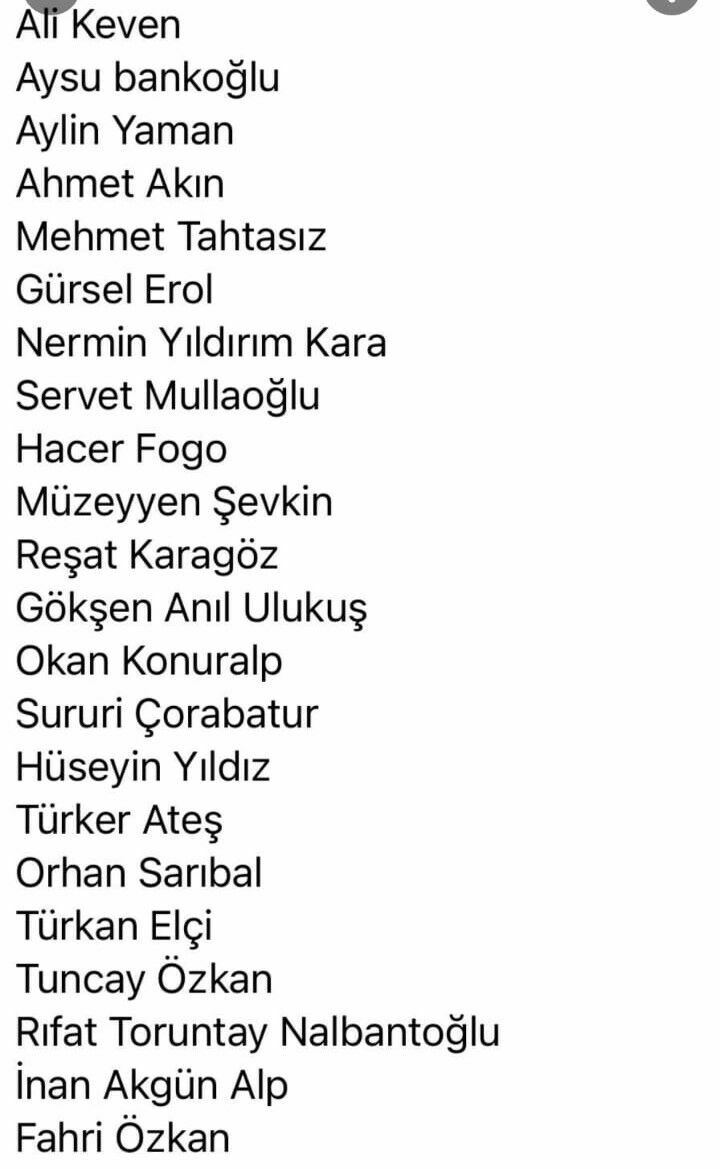 İşte listedeki kişilerin isimleri:
