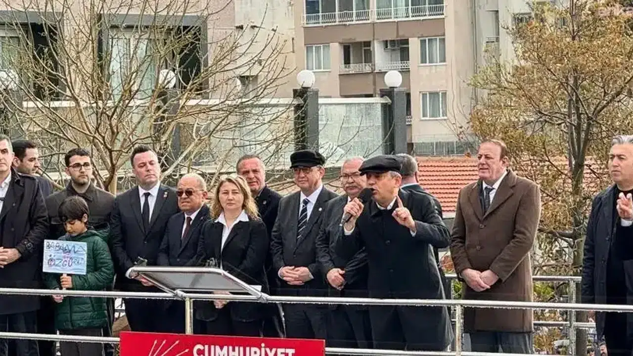 CHP Genel Başkanı Özgür Özel, sağanak yağmur altında taktığı kasketiyle kürsüye çıkarak Cumhurbaşkanı Erdoğan’a ve AK Parti’ye katılan Özlem Çerçioğlu’na şu sözlerle yüklendi: