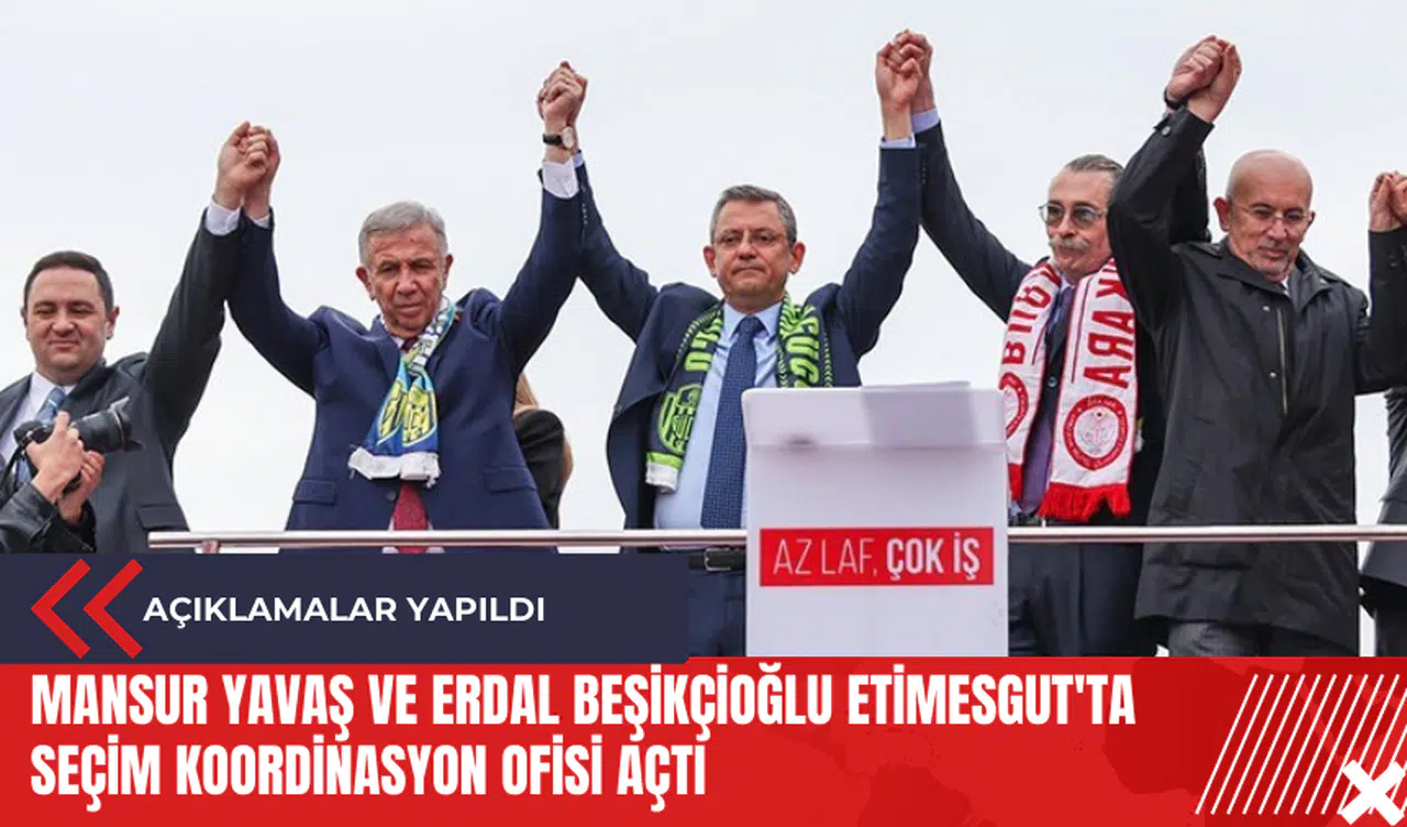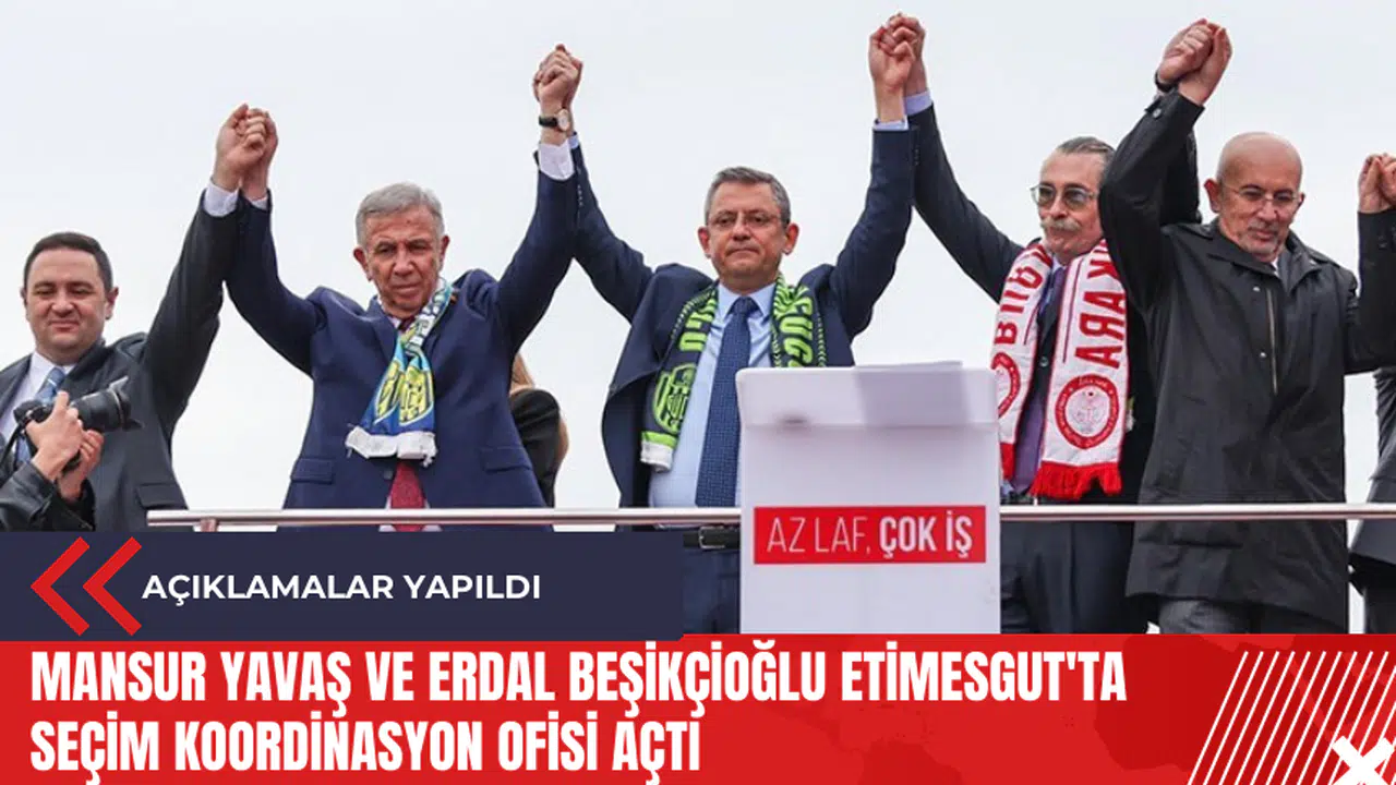 Ankara Büyükşehir Belediye (ABB) Başkanı ve adayı Mansur Yavaş ile CHP'nin Etimesgut adayı oyuncu Erdal Beşikçioğlu, Etimesgut'ta seçim koordinasyon ofisi açtı. Açılış etkinliğine CHP lideri Özgür Özel de katıldı. CHP'nin bazı Ankara milletvekilleri ve Genel Başkan Yardımcısı Yalçın Karatepe de etkinlikte yer aldı.