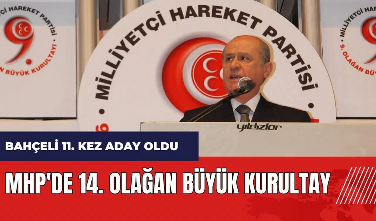 MHP'nin 14. Olağan Büyük Kurultayı, 17 Mart Pazar günü Ankara Spor Salonu'nda gerçekleştirilecek. Kurultay kapsamında parti, Genel Başkan ile Merkez Yönetim Kurulu (MYK) ve Merkez Disiplin Kurulu (MDK) üyelerini seçecek. Kurultayın teması 'Ülke için var olduk, bir ülküye yar olduk. Ülkeye sevda, ülküye yemin' olarak belirlendi. Kurultay sonrasında Başkanlık Divanı oluşturulacak ve yedek üyeler de seçilecek. MHP Lideri Devlet Bahçeli, 11. kez genel başkanlığa aday gösterilmiş olacak.